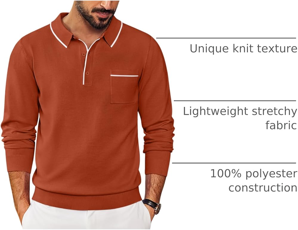 • تصميم أنيق - استمتع بقمصان بولو الرجالية المحبوكة من COOFANDY بأكمام طويلة. يتميز هذا البولو العصري ذو المقاس النحيف بياقة كلاسيكية متباينة، وتصميم بثلاثة أزرار، وأساور أكمام وحاشية مضلعة. بفضل نسيجه المنسوج الفريد، يضيف لمسة أنيقة إلى قميص البولو التقليدي.