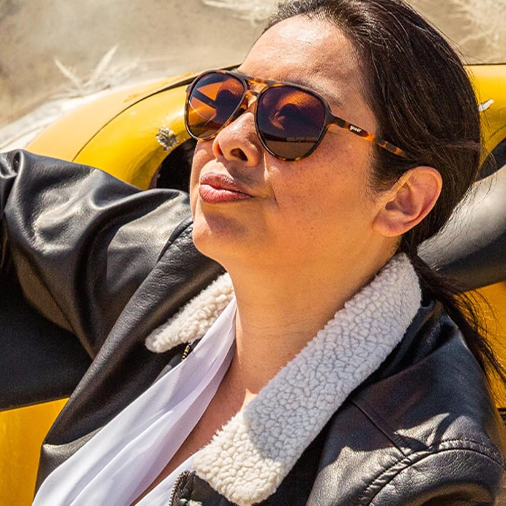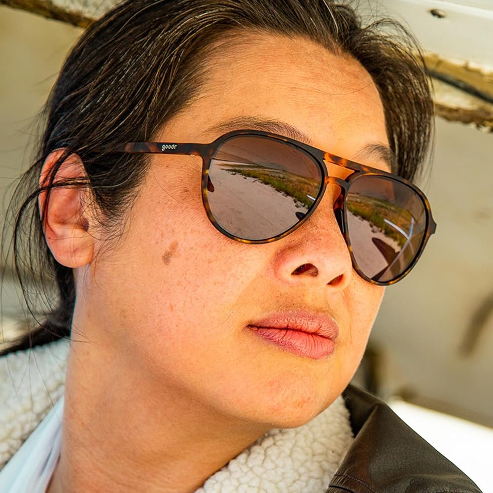 نظارات شمسية جودر أميليا إيرهارت جوست مي مستقطبة للرجال والنساء، إطارات بنية شفافة مع عدسات بنية غير عاكسة، حماية من الأشعة فوق البنفسجية 400، مانعة للانزلاق