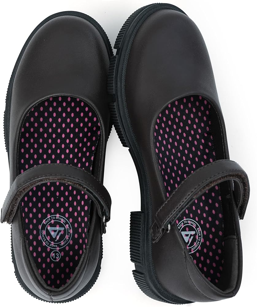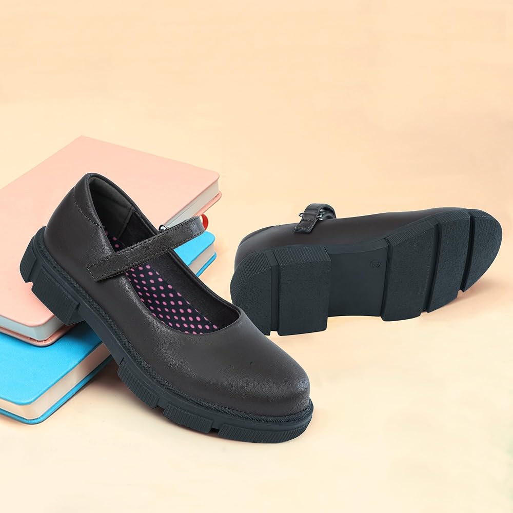 تتميز أحذية بلاك ماري جين للفتيات بتصميم كلاسيكي مستدير عند الأصابع، مما يوفر مساحة واسعة لنمو صحي للقدم.