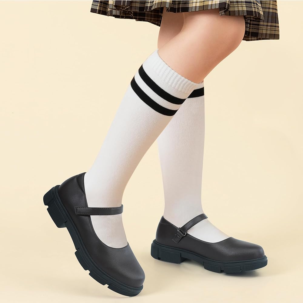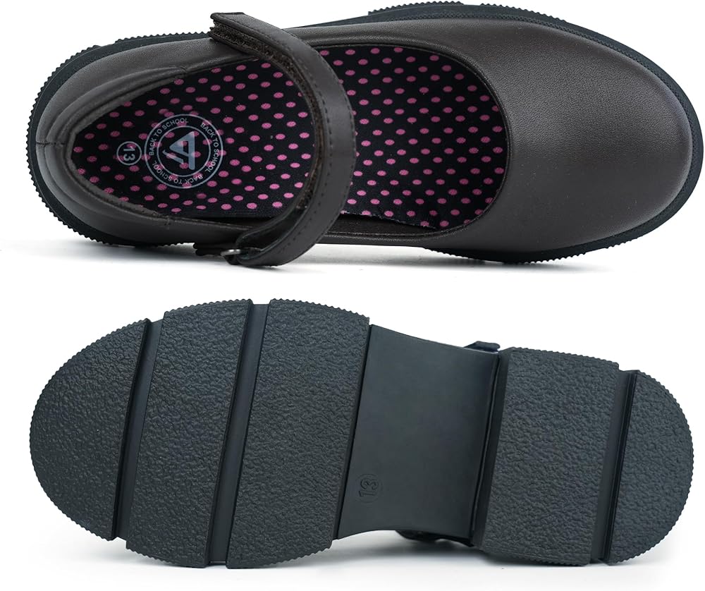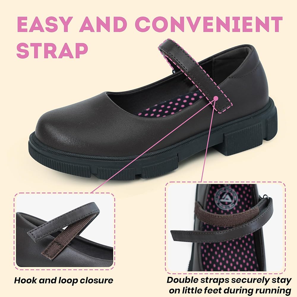 أحذية Mary Jane المسطحة للفتيات، مجهزة بنعل خارجي من المطاط اللدن حراريًا غير قابل للانزلاق ووسادة إسفنجية ناعمة، تضمن السلامة والراحة للارتداء طوال اليوم.