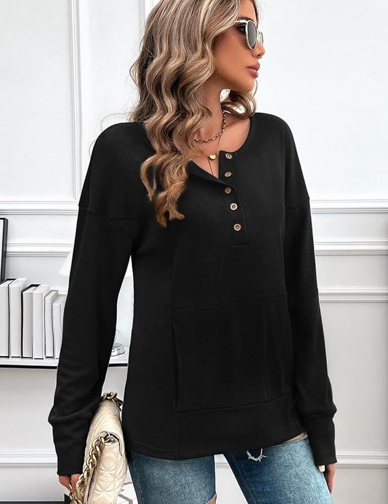 رقبة دائرية عصرية وتصميم أزرار كلاسيكي: تضيف الرقبة على شكل حرف V لمسة أنيقة وأنيقة، بينما يوفر التصميم اللطيف ذو الأزرار السفلية نمطًا أساسيًا ولكنه أساسي لأزياءك اليومية.