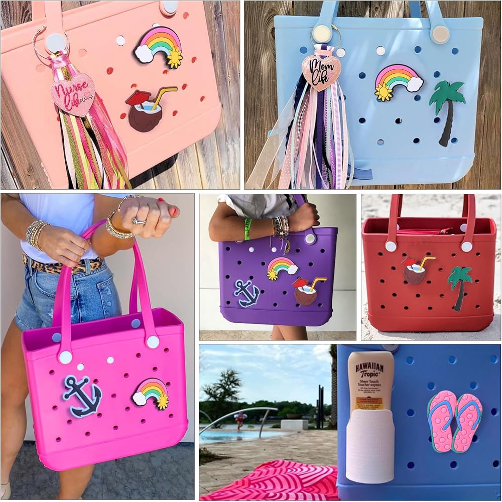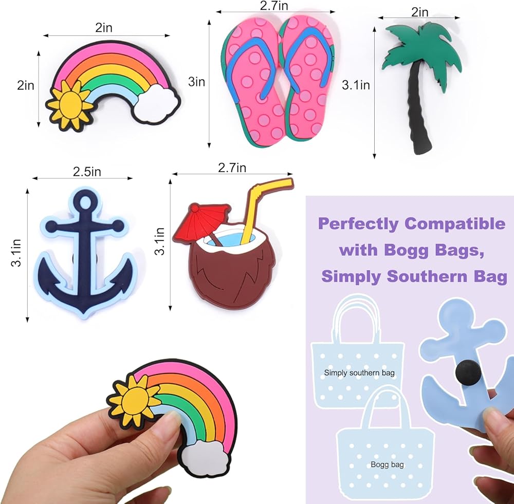 【غريبة الأطوار وخفيفة الوزن】: سوف تحصل على 5 قطع من حليات حقائب هاواي وجوز الهند وشجرة جوز الهند ومرساة ونعال وقوس قزح. مصنوعة من السيليكون عالي الجودة، إكسسوارات الحقيبة ليست متينة فحسب، بل خفيفة الوزن أيضًا. تُعد إكسسوارات الحقائب الرائعة مثالية لحقائب الشاطئ للحفاظ على إضاءة حقيبتك