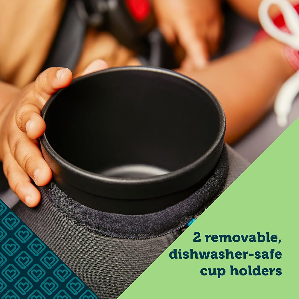 Get the car seat that's built to grow! From your first ride together coming home from the hospital to soccer day car pools, the Crosstown DLX Car Seat will give your child a safe and more comfortable ride. Featuring the new single hand adjustable headrest, you can adjust the headrest and harness as your little one gets bigger with just one hand and in one quick motion, without re-threading the harness or re-installing the car seat. Harness holders keep the harness straps out of the way, making it easier to get your child in and out of the car seat. As your tiny baby grows into a big kid, messes are bound to happen, but we've made cleaning easy. The seat pad snaps off easily without removing the harness and is machine washable and dryer safe. Dual cup holders transport favorite drinks and snacks and are easily removable and dishwasher safe. When your child is ready to use the vehicle seat belts, remove the harness for belt-positioning booster mode, suitable from 40-100 lbs. Buckling up with the vehicle belt is easy with the visible belt path guiding the way. Built for child comfort, the Crosstown DLX includes two removable grow-with-baby pillows to give your new travel companion a snug fit. Dual armrests provide added comfort for older kids on long car rides. The Crosstown DLX provides more comfort for parents too, taking up less space when placed rear-facing, giving up to 7 inches more legroom for parents in the front seat.