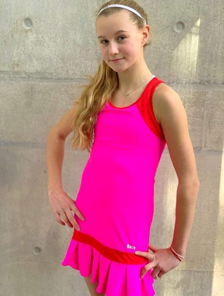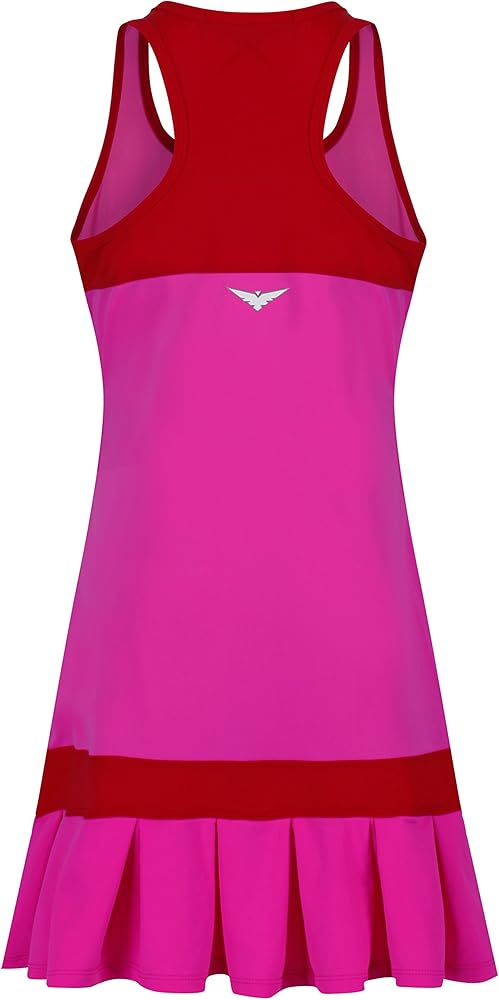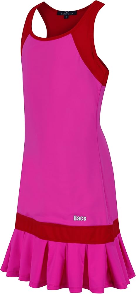 - فستان تنس للفتيات باللونين الوردي والأحمر، تنورة مطوية تتضمن سراويل داخلية متطابقة، فستان تنس للصغار / فستان جولف للفتيات /