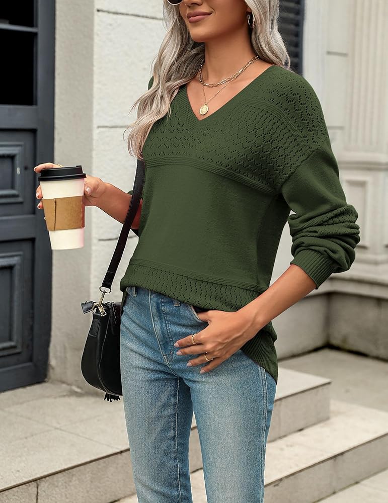 سترة متعددة الاستخدامات: بلوفر خريفي وشتوي بأكتاف منسدلة للنساء يمكن أن يكون قميصًا أنيقًا أو كاجوال، بلوفر كروشيه مثالي للارتداء مع ملابس أخرى أو ارتدائه بمفرده. يمكنك إقرانه مع السراويل الضيقة والجينز والتنانير والسراويل القصيرة لإظهار النمط الكاجوال. أيضًا يمكن أن يتطابق مع السترات أو السترات أو المعاطف في الأيام الباردة.