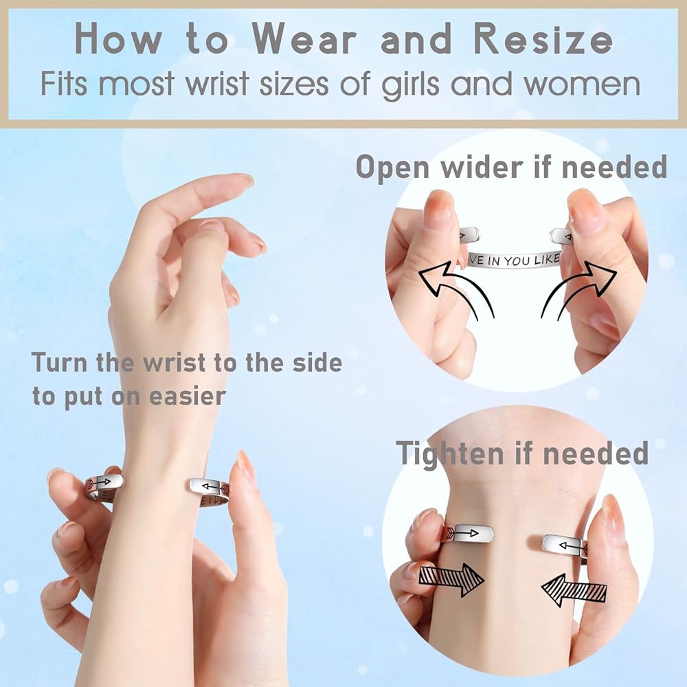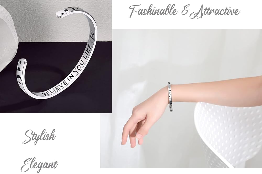 【ضمان الجودة لهدايا المراهقين】 كل سوار ملهم مصنوع باستخدام الفولاذ المقاوم للصدأ الفاخر، ولا يسبب الحساسية ومضاد للتشويه. مرآة مصقولة من الأمام والداخل للحصول على مظهر لامع للغاية ورائع. نقش واضح بما فيه الكفاية لسهولة القراءة والملاحظة. ناعم ومريح للارتداء اليومي والتذكير.