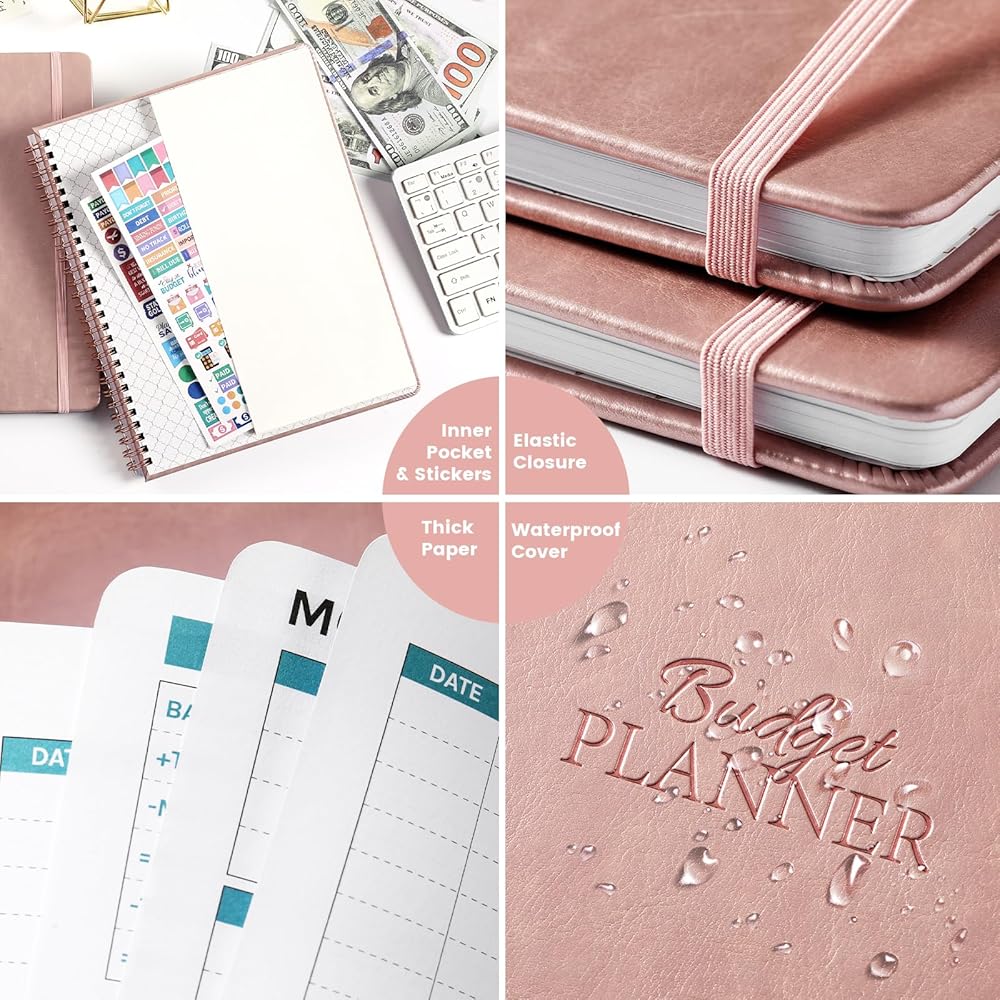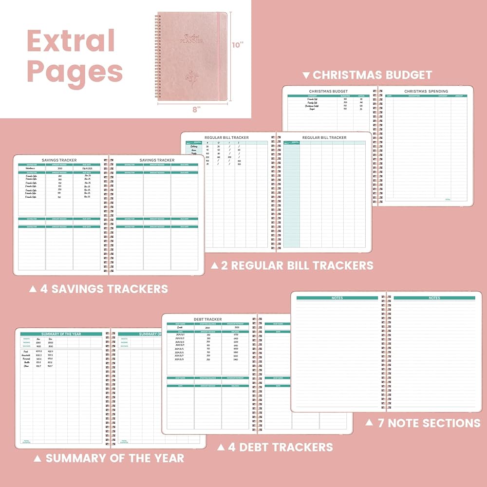 تصميم عملي - هذا الكتاب ذو الميزانية المحدودة ذو غلاف حلزوني قوي، وجيب داخلي لوضع بعض البطاقات الصغيرة وإغلاق مرن للحفاظ على مخطط الميزانية دون السقوط. ملخص النفقات الشهرية + متتبع الفواتير العادية + ملخص العام + متتبع الادخار + متتبع الديون + مراجعة الميزانية الشهرية + أهدافي المالية + متتبع النفقات + شهري وسنوي + إستراتيجيتي + أفكار وملاحظات + ميزانية العطلة وهدايا + خطة شهرية + مرونة إغلاق + ملصقات ملونة