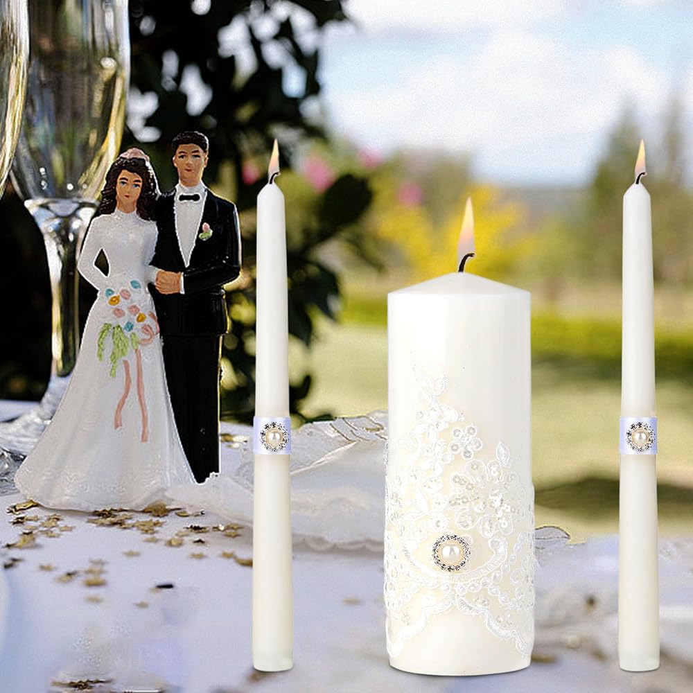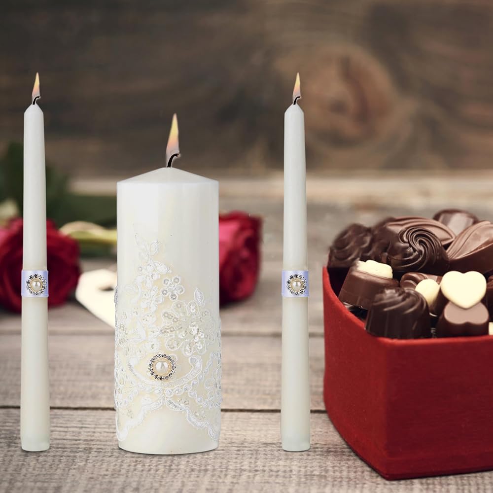 ELEGANT WEDDING DECORATION - Our unity candles are more than just symbolic; they also serve as exquisite wedding decorations. Their timeless design and elegant lace appearance enhance the ambiance of any wedding ceremony, adding a touch of sophistication and romance to the event. They become focal points that elevate the overall atmosphere and create unforgettable memories.