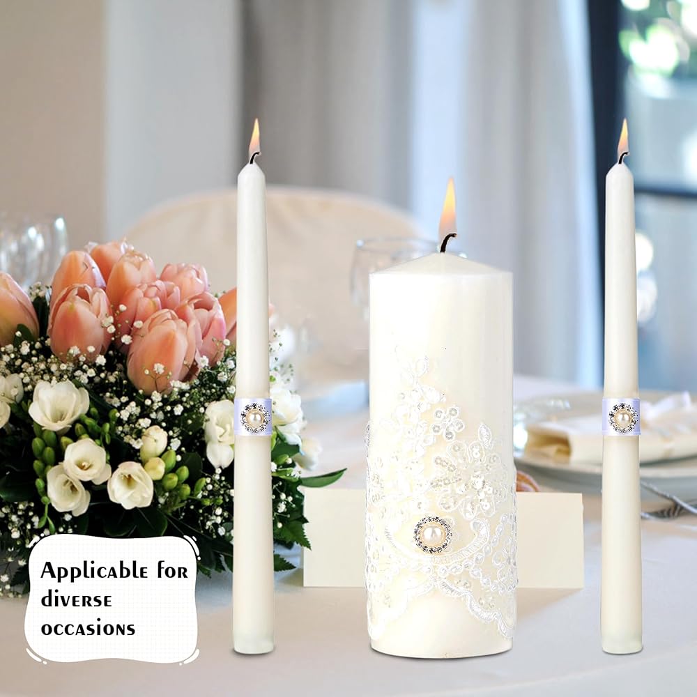PRACTICALITY AND DURABILITY - Crafted from high-quality wax that ensures long-lasting burning without dripping or wick soaking, these wedding candles for ceremony are not only beautiful but also practical, making them reliable companions for your special day and beyond.