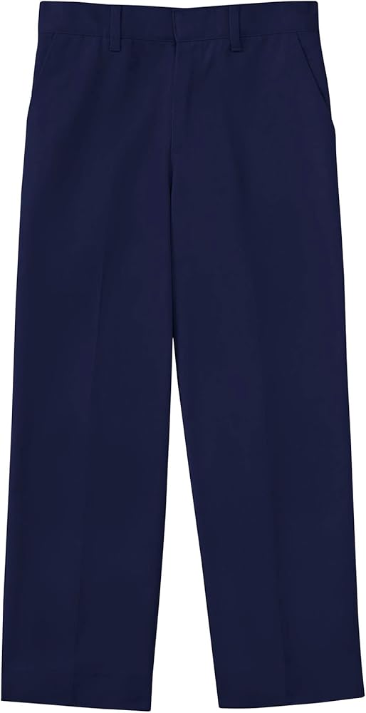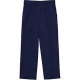 Boys flat-front pant with double knee, waist has center-back elastic and hook-and-eye closure, soil-release treated poly/cotton twill holds color and releases stains with little or no ironing