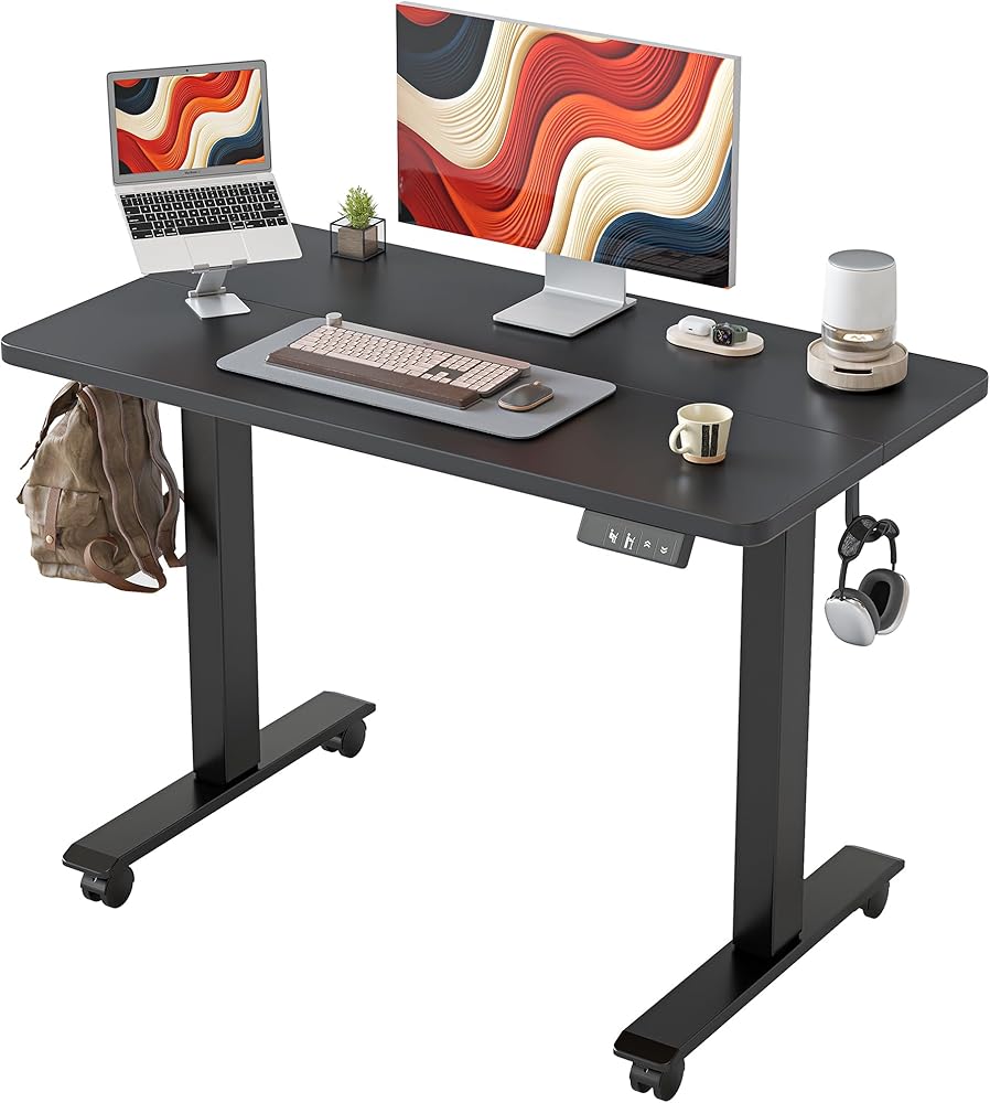 مكتب قائم قابل لضبط الارتفاع - يمكن تعديل ارتفاع مكتب الجلوس إلى الوقوف من "28.3" إلى "47.2"، مع رفعه بسلاسة وسرعة إلى الارتفاع المحدد مسبقًا بلمسة زر فقط. يعد مكتب الوقوف مناسبًا تمامًا للاستخدام ككمبيوتر مكتب، مكتب ألعاب، طاولة دراسة، سواء في المنزل أو المكتب.