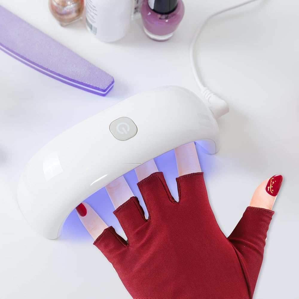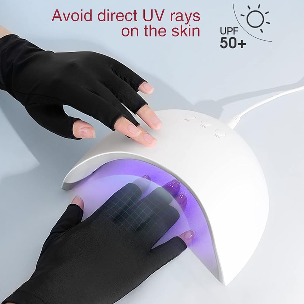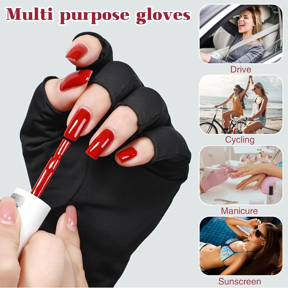 الحماية: تتطلب العناية بالأظافر ضوء الأشعة فوق البنفسجية لتشعيع الأصابع مباشرة، ويستخدم لتجفيف الجل الموجود على الأظافر، ولكن ضوء الأشعة فوق البنفسجية يمكن أن يسبب ضررًا للجلد، مما يؤدي إلى اسمرار البشرة وجفافها وشيخوخة البشرة. يمكن لقفازات الحماية من الأشعة فوق البنفسجية أن تعزل أضرار الضوء الضارة على الجلد بشكل مباشر، وتحجب 99% من الأشعة فوق البنفسجية لحماية يديك من حروق الشمس.