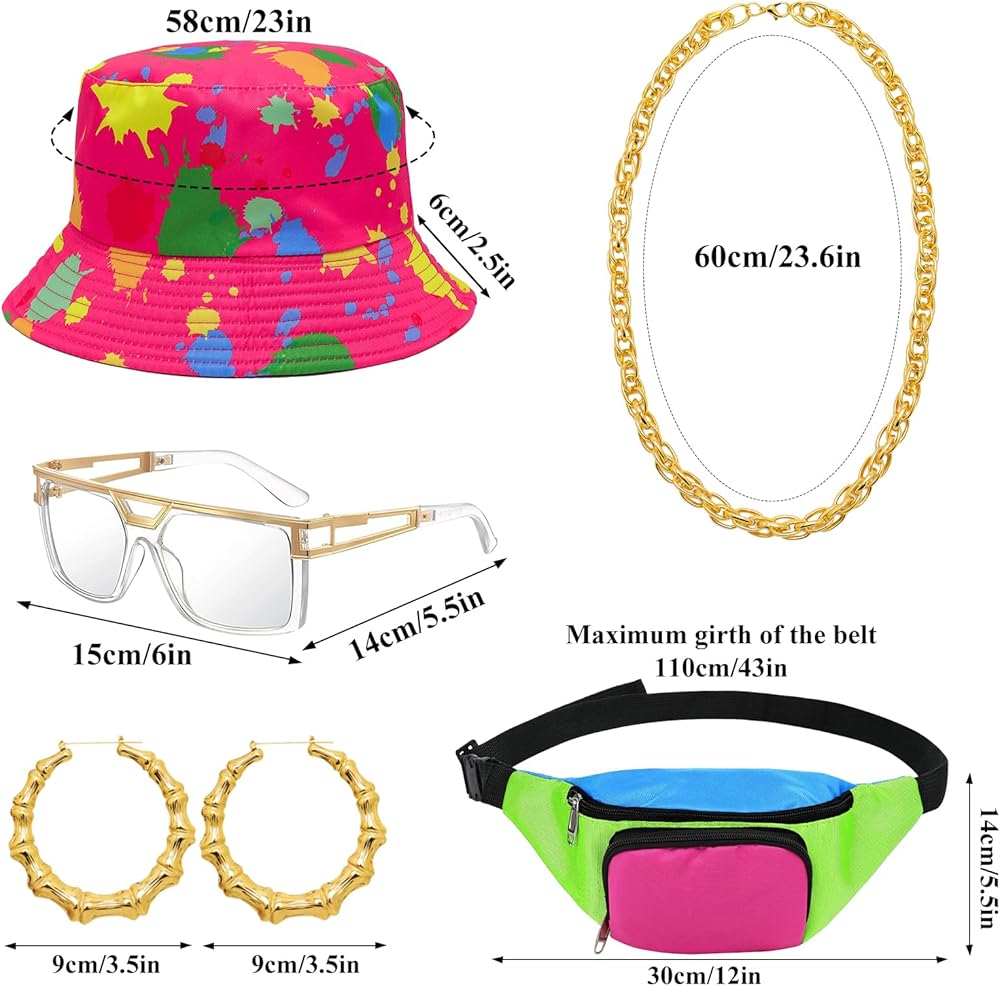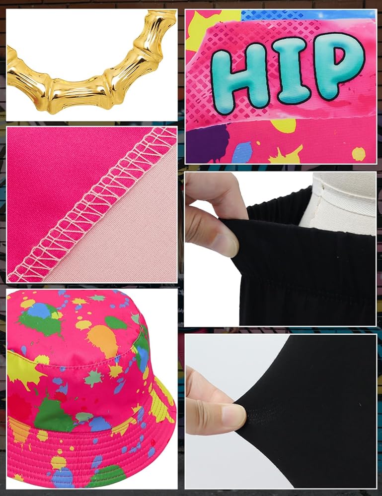 【ألوان زاهية لافتة للنظر】كن حديث الحفل مع إكسسوارات هذه المجموعة النابضة بالحياة والملونة التي تمثل أزياء الثمانينيات والتسعينيات. تكمل إكسسوارات مغني الراب هذه بعضها البعض وتخلق تشكيلة مفعمة بالحيوية تغمرك في أجواء الحفلة. مجموعة أزياء الهيب هوب الخاصة بنا في التسعينيات تعد هدية رائعة للأصدقاء والزملاء والأقارب والأخوات والمزيد، مما يسمح لهم بالتميز في أي مناسبة.