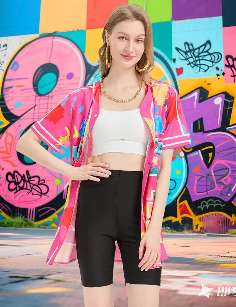 【مادة مريحة عالية الجودة】- زي الهيب هوب للسيدات في الثمانينيات والتسعينيات مصنوع من أقمشة صديقة للبشرة وتدوم طويلاً. القميص مصنوع من مزيج من البوليستر والألياف اللدنة، مما يجعله مساميًا ومقاومًا للتجاعيد. شورت راكب الدراجة النارية عالي الخصر مصنوع من البوليستر الناعم والمرن، مما يعزز الراحة والمرونة. المجموعة بأكملها خفيفة الوزن ومريحة، مما يضمن لك الاستمتاع بالحفلة دون أي قلق.