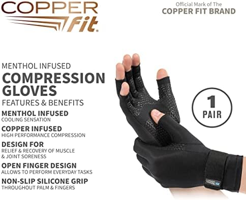 • Each package contains 1 pair of Copper Fit ICE Compression Gloves Infused with Menthol, Black, Small/Medium