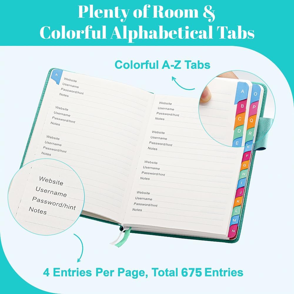 [منظمة علامات التبويب الأبجدية الملونة] هل تحتاج إلى تحديد موقع الرمز خلال ثوانٍ؟ يضمن لك دفتر كلمات المرور هذا العثور على الرموز على الفور من خلال علامات تبويب نابضة بالحياة للتنقل السريع عبر كلمات المرور الخاصة بك. بفضل التصميم المرتب بشكل واضح، يعمل كتاب كلمات المرور هذا على تبسيط إدارة كلمات المرور، حتى بالنسبة لكبار السن