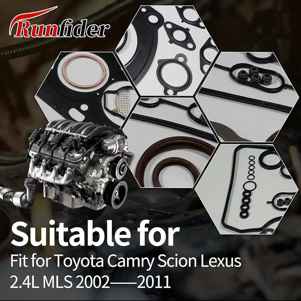 مجموعة حشيات رأس المحرك الجديدة مناسبة لسيارة Toyota Camry Scion Lexus 2.4L MLS 2002-2011 مجموعة حشيات الرأس 2AZFE Hybrid 2AZFXE استبدال #11115-28010، 11115-28011