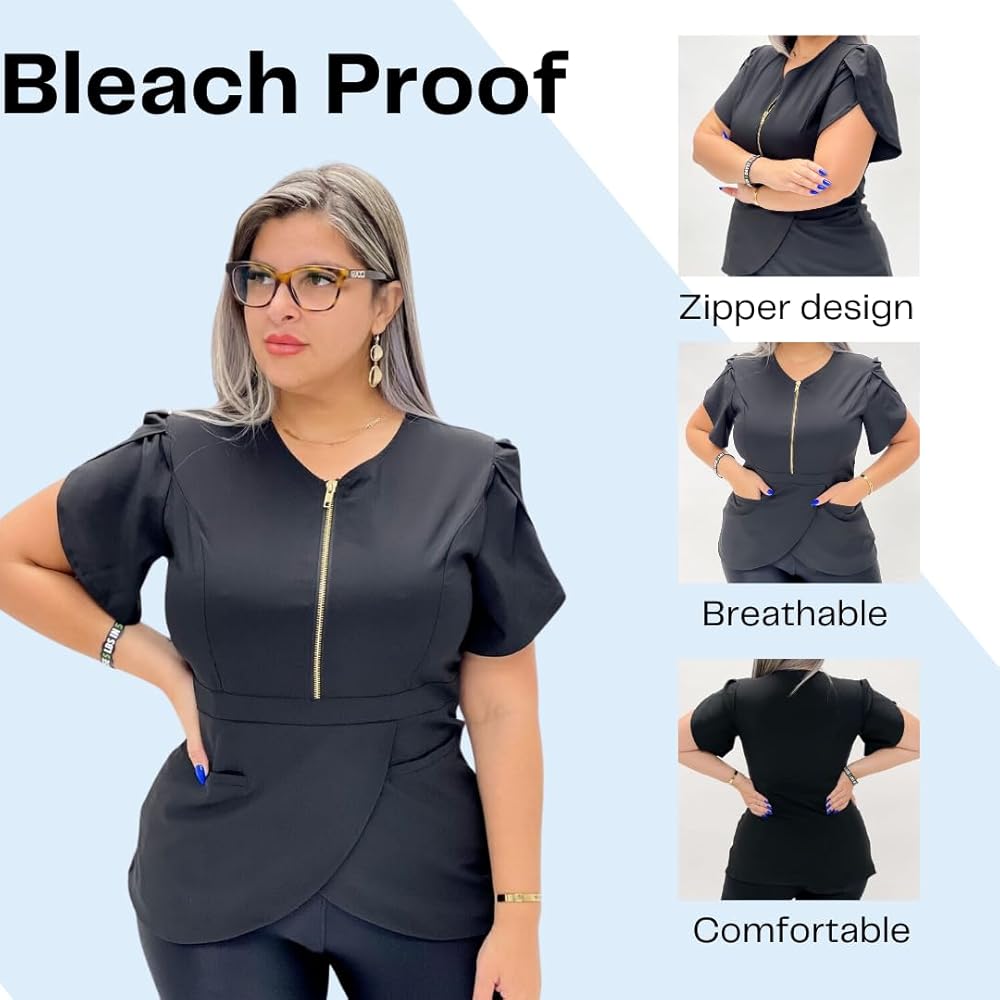 ⭐ ملاءمة مثالية: مجموعات التنظيف النسائية ذات التصميم المطابق للحجم الناعم مع سحاب إغلاق توفر المزيد من التمدد والراحة والحركة والمرونة. مادة مزيج البوليستر ذات خصائص مقاومة للتبييض ومقاومة للتجاعيد، مما يوفر لك مظهرًا احترافيًا.