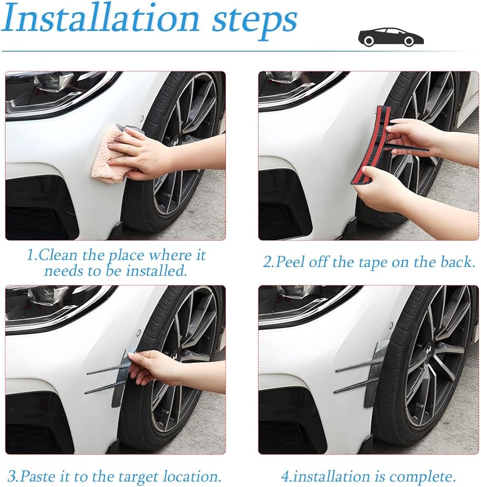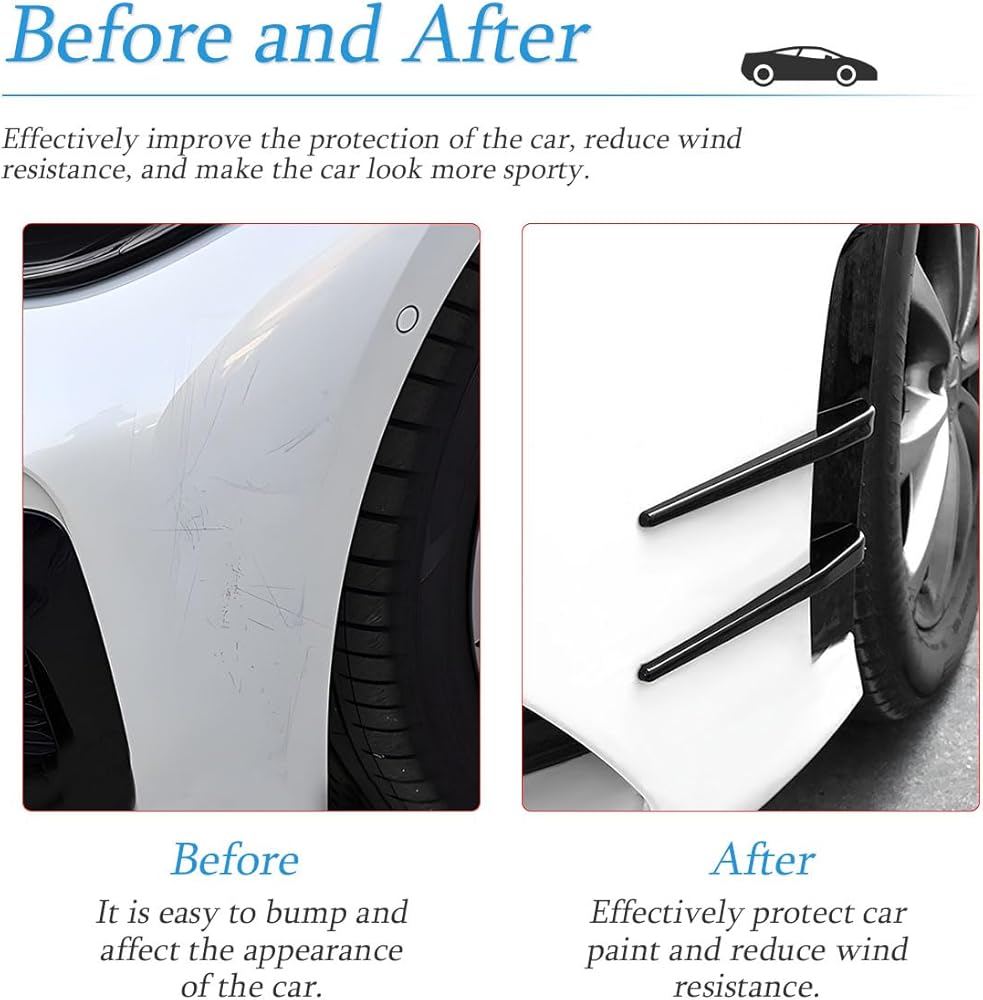 【Collision Protection】: This sticker can cover scratches well and make the car look like new and more beautiful. Stick it on both wings of the front bumper to protect the body paint and keep the car from being scratched by collisions when passing through narrow places or parking.