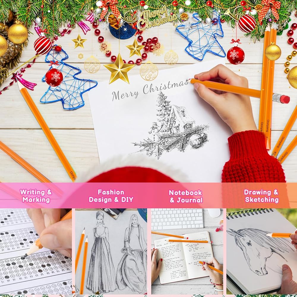 • 【50 PCS Value Pencils Bulk】Donyang's bulk pack of Number Two pencils comes in a sturdy box with a rounded hexagon shape to reduce rolling. Ideal for schools, offices, and homes, these pencils provide smooth, consistent strokes. They make great gifts for teachers, parents, friends, workmates, and students, perfect for back-to-school supplies and classroom essentials. Furthermore, they are suitable for other occasions such as Halloween, Christmas, Thanksgiving, Easter, birthdays and graduations.