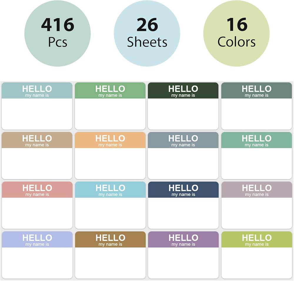 مجموعة متنوعة من الألوان الأنيقة: تتميز بـ 16 لونًا متطورًا ودائمًا، تثير ملصقات بطاقات الاسم لدينا شعورًا بالبهجة مع ضمان سهولة التعرف عليها وتنظيم لا تشوبه شائبة