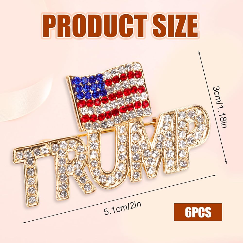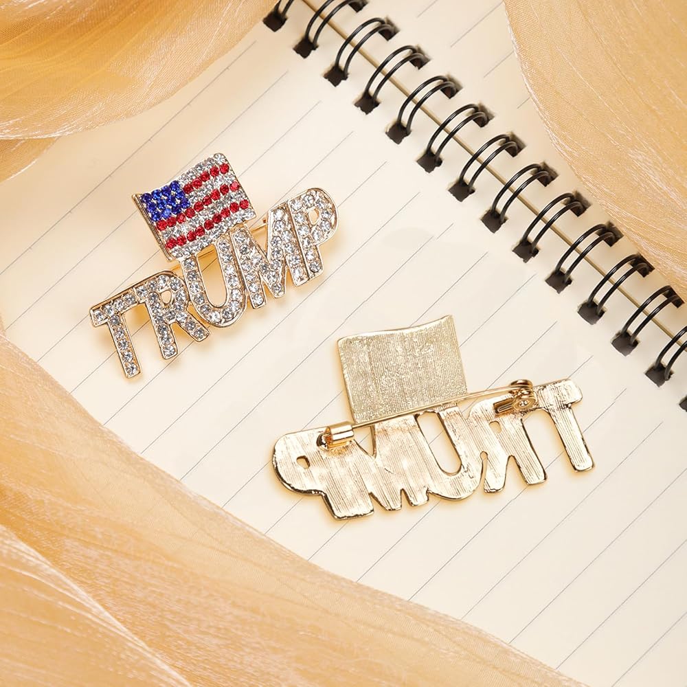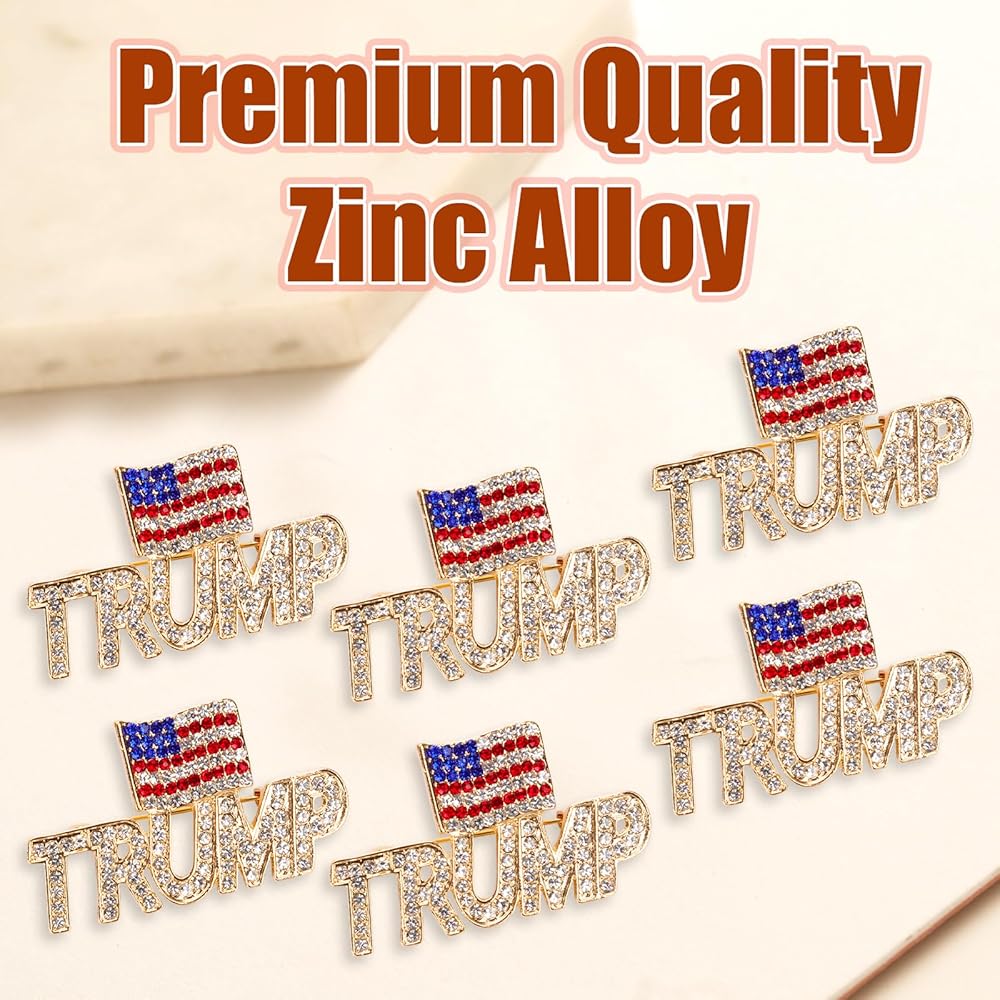 Premium Quality: Each Trump brooch is made from quality zinc alloy with sparkling crystals, demonstrating both grace and durability.