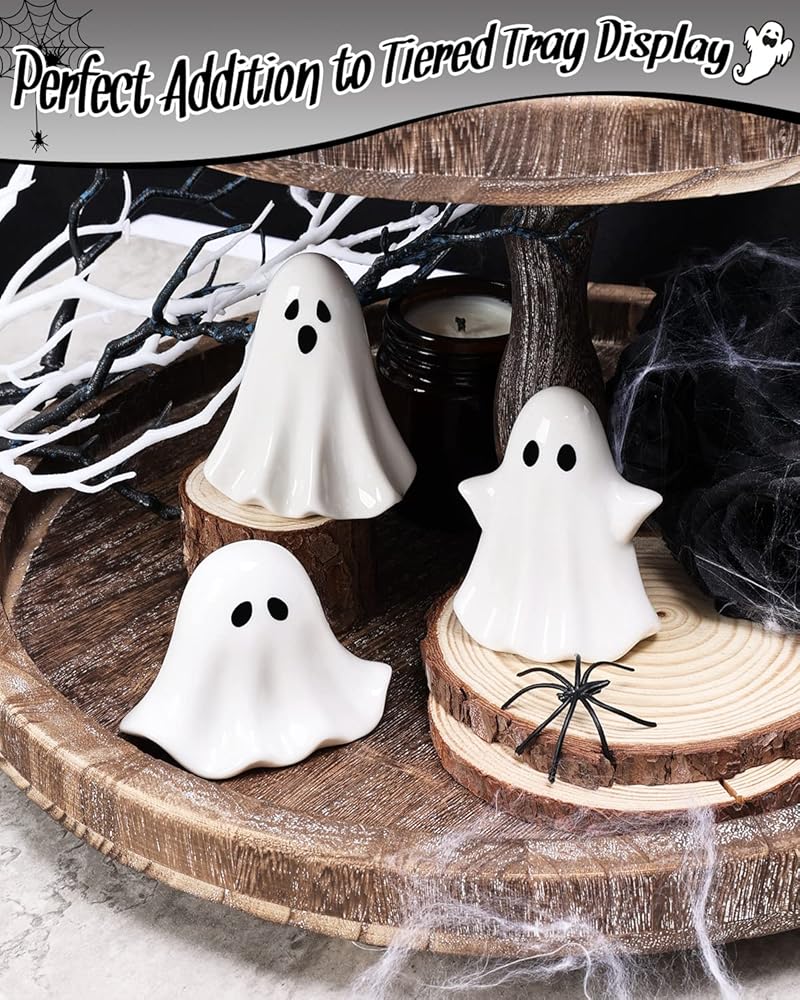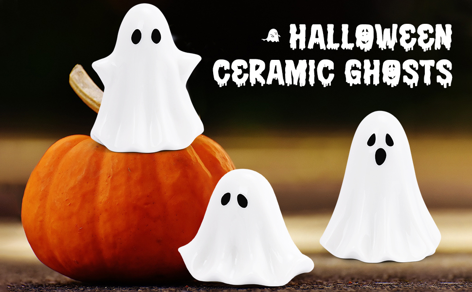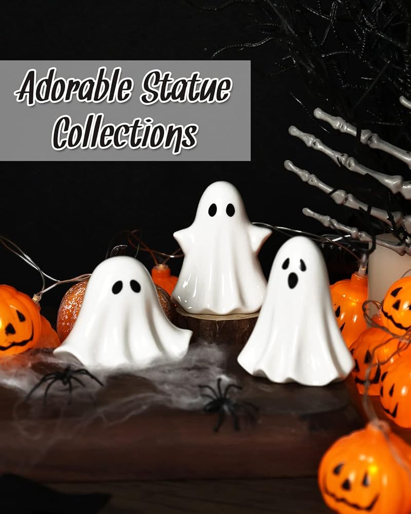 ديكور شبح الهالوين الخزفي -- بوو! هذه المجموعة الرائعة المكونة من 3 أشباح سيراميك مثالية للزاوية الريفية أو المزرعة أو المنزل الريفي أو رف الكتب أو العرض، وهي ضرورية في منزلك في موسم العطلات هذا.