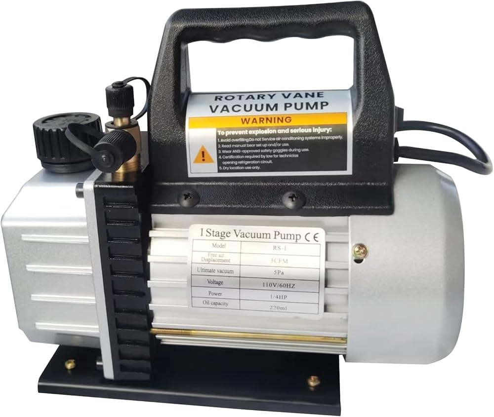 مضخة تفريغ الهواء مصنوعة من هيكل من الألومنيوم المصبوب وقاعدة مطاطية مركبة مضادة للانزلاق، خفيفة الوزن وقوية. تتضمن أيضًا زجاجة واحدة من الزيت المفرغ سعة 200 مل. يتم تضمين حقيبة حمل للتخزين المريح وسهولة الحركة.