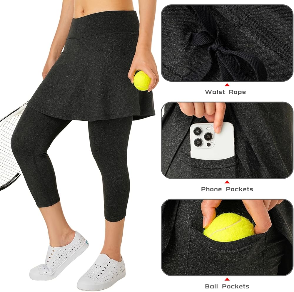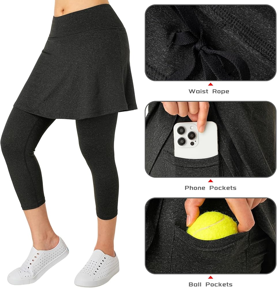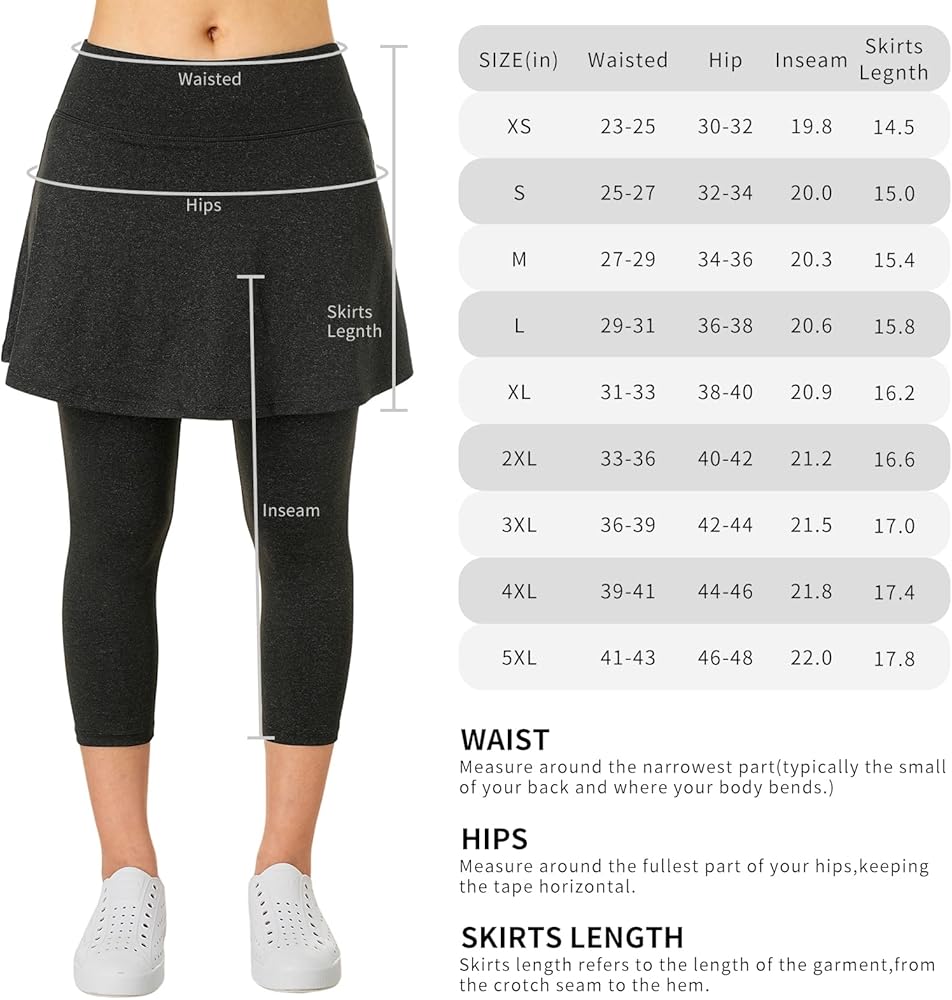 مناسبات ارتداء متعددة: سراويل ضيقة رياضية مع تنانير مرفقة للتنزه سيرًا على الأقدام وتمارين صالة الألعاب الرياضية والجري واليوجا وغيرها من الرياضات. تعتبر السراويل القصيرة متوسطة الطول تحت الركبة مع السراويل الضيقة رائعة للعمل في المنزل والتسوق والمناسبات اليومية الكاجوال