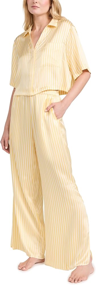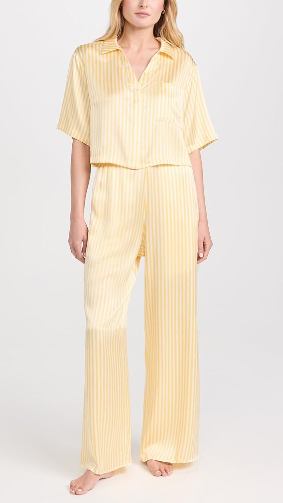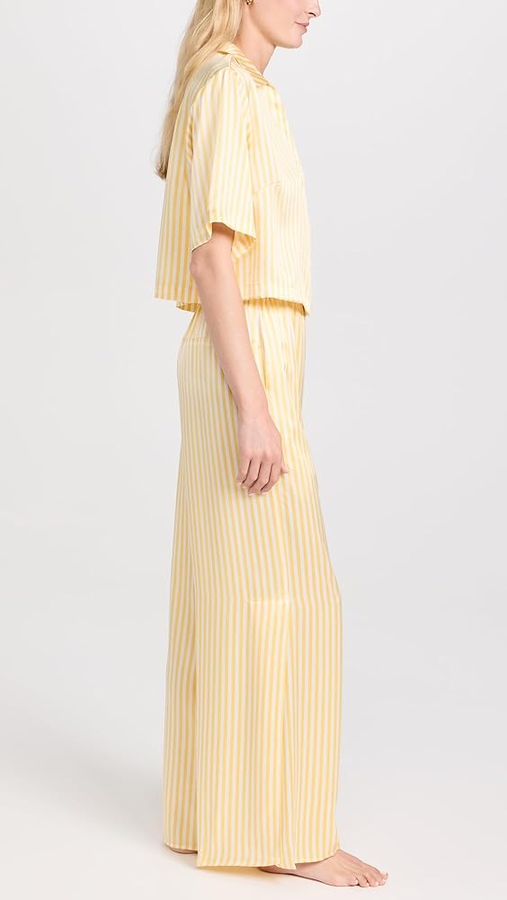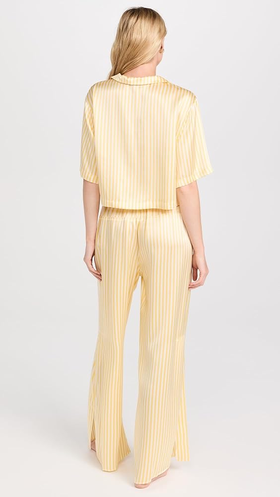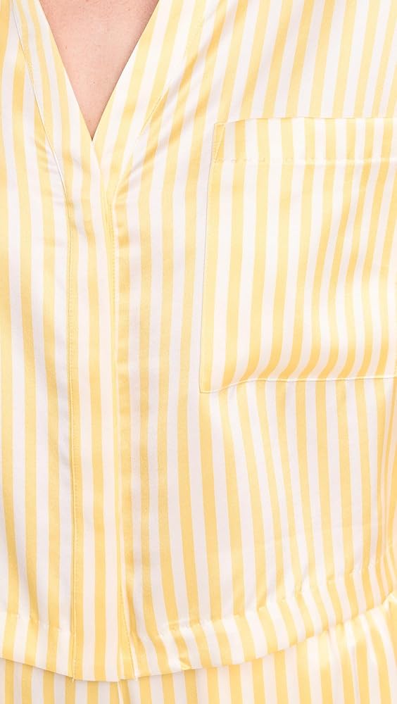 طباعة مخططة، قصة واسعة الساق مع أطراف أكمام مقسمة، مصنوعة من حرير التوت عالي الجودة الذي يمتص الرطوبة بشكل طبيعي وينظم الحرارة، صبغات معتمدة من العلامة الزرقاء