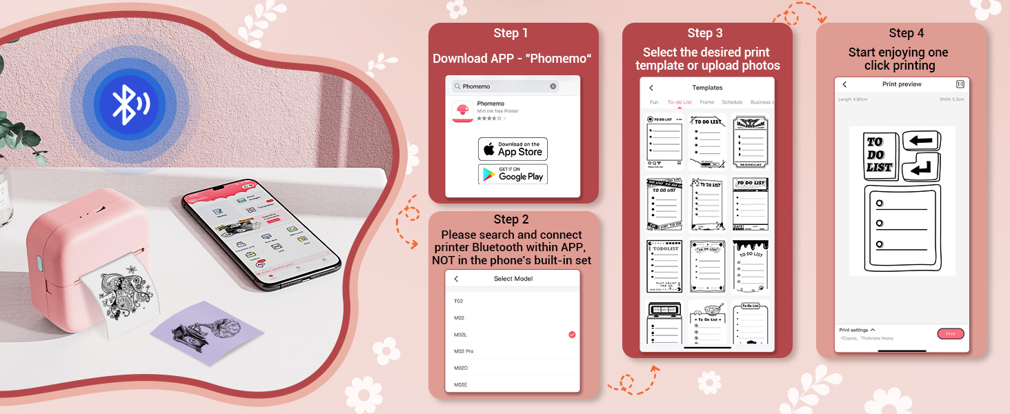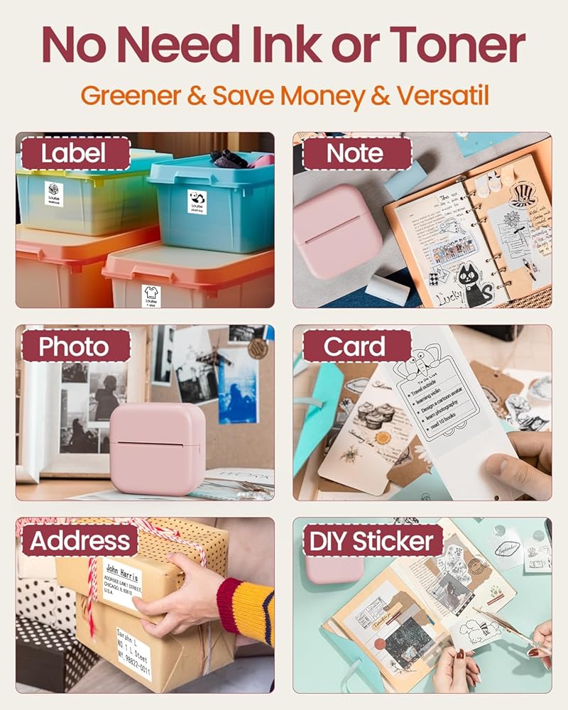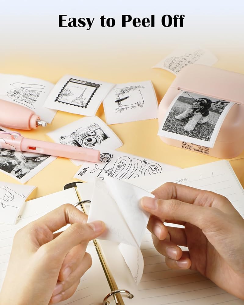 👍تصميم حميم: ملصقات حرارية Memolife M02L التصاق قوي على الظهر، لا حاجة للغراء عند اللصق. مع التكنولوجيا المتقدمة، لا يترك الملصق الحراري T02 أي بقايا مزعجة بعد التقشير.