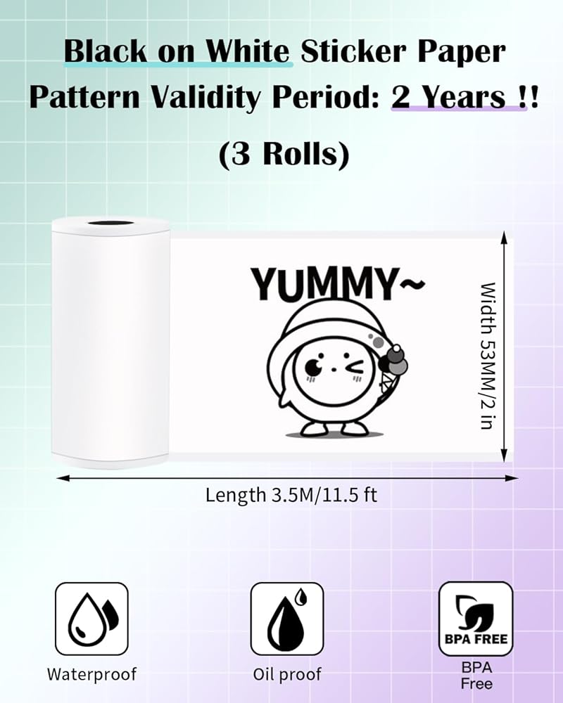 👍【متوافق بنسبة 100%】: توفير ورق T02 الحراري الأصلي / ورق M02L / ورق M02X - متوافق تمامًا مع ورق الملصقات Phomemo Mandizza Memoqueen Memoking T02 / M02X / M02L، بالمقارنة مع ورق الملصقات t02 الآخر، فإن المطبوعات الورقية Memolife M02L أكثر وضوحًا وأفضل مظهرًا. وأكثر متانة