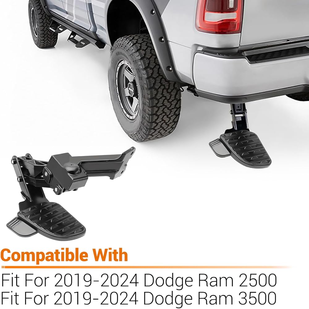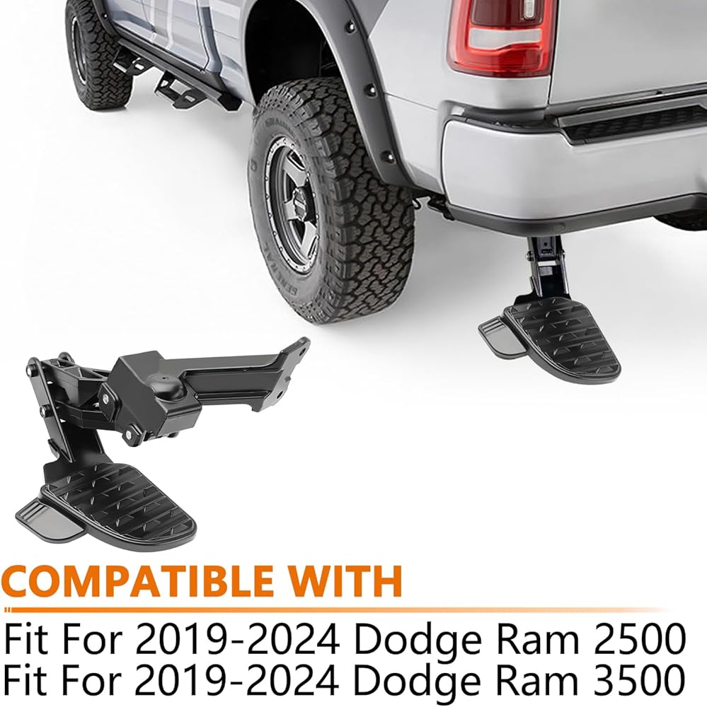✔️ متوافق مع دودج رام 1500 DT نمط الجسم الجديد: 2019 2020 2021 2022 2023 2024 دودج رام 1500 DT نمط الجسم الجديد مع مركبات العادم المزدوج الخلفية للشاحنة خطوة مصد قابلة للسحب.