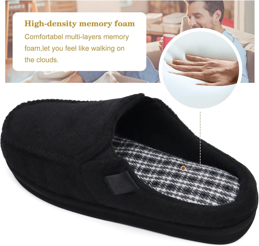 شبشب مريح للرجال: هذه الشباشب المنزلية الرجالية مصنوعة من مزيج القطن وكعب على شكل سدادة. من السهل ارتداؤه وخلعه للحياة اليومية.