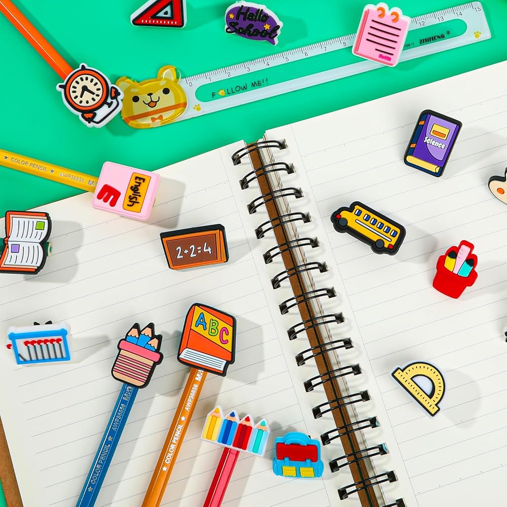 موضوع العودة إلى المدرسة: نمط أغطية أقلام الرصاص JUNEBRUSHS للأطفال رائع وجميل. هناك العديد من الأنماط التي يمكنك الاختيار من بينها، مثل حاوية الأقلام، والحقيبة المدرسية، والكتب المدرسية، والمسطرة، وساعة المنبه، وما إلى ذلك. الألوان الزاهية جنبًا إلى جنب مع الأنماط المثيرة للاهتمام تجعل الأطفال سعداء للغاية لتلقي جوائز الفصل الدراسي في احتفال العودة إلى المدرسة
