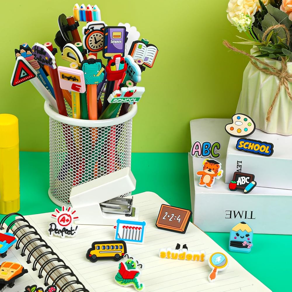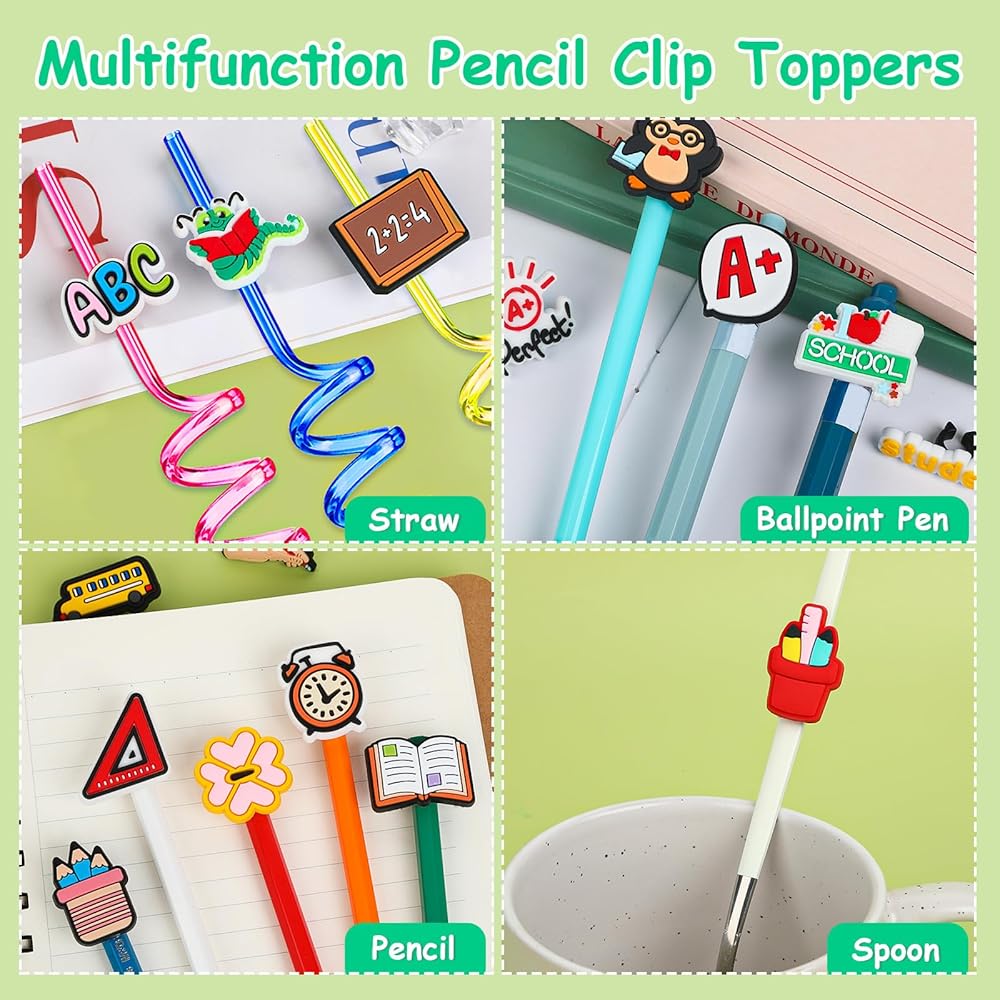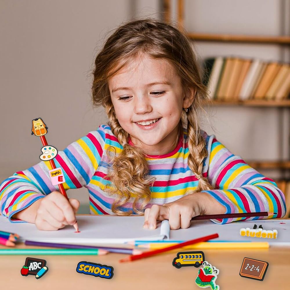 تستخدم على نطاق واسع: حليات أقلام الرصاص مناسبة لأقلام الرصاص من معظم الأحجام، ويمكن استخدامها أيضًا كأقلام وقش وغيرها من العناصر للزينة. يمكنك عمل مجموعة متنوعة من الزخارف المركبة لزيادة متعة الزخرفة بالقلم الرصاص. يُعد الجزء العلوي من مشبك القلم الرصاص خيارًا مثاليًا للعائلات والمدارس والفصول الدراسية لمكافأة الطلاب