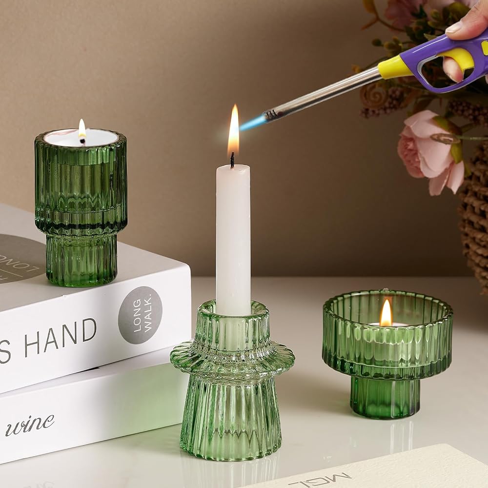 • زجاج حامل الشموع الخفيف: الشمعدانات الخاصة بنا مصنوعة من زجاج سميك وشفاف. يزن كل حامل شموع 0.24-0.28 رطل لذلك فهو قادر على حمل الشمعة بثبات