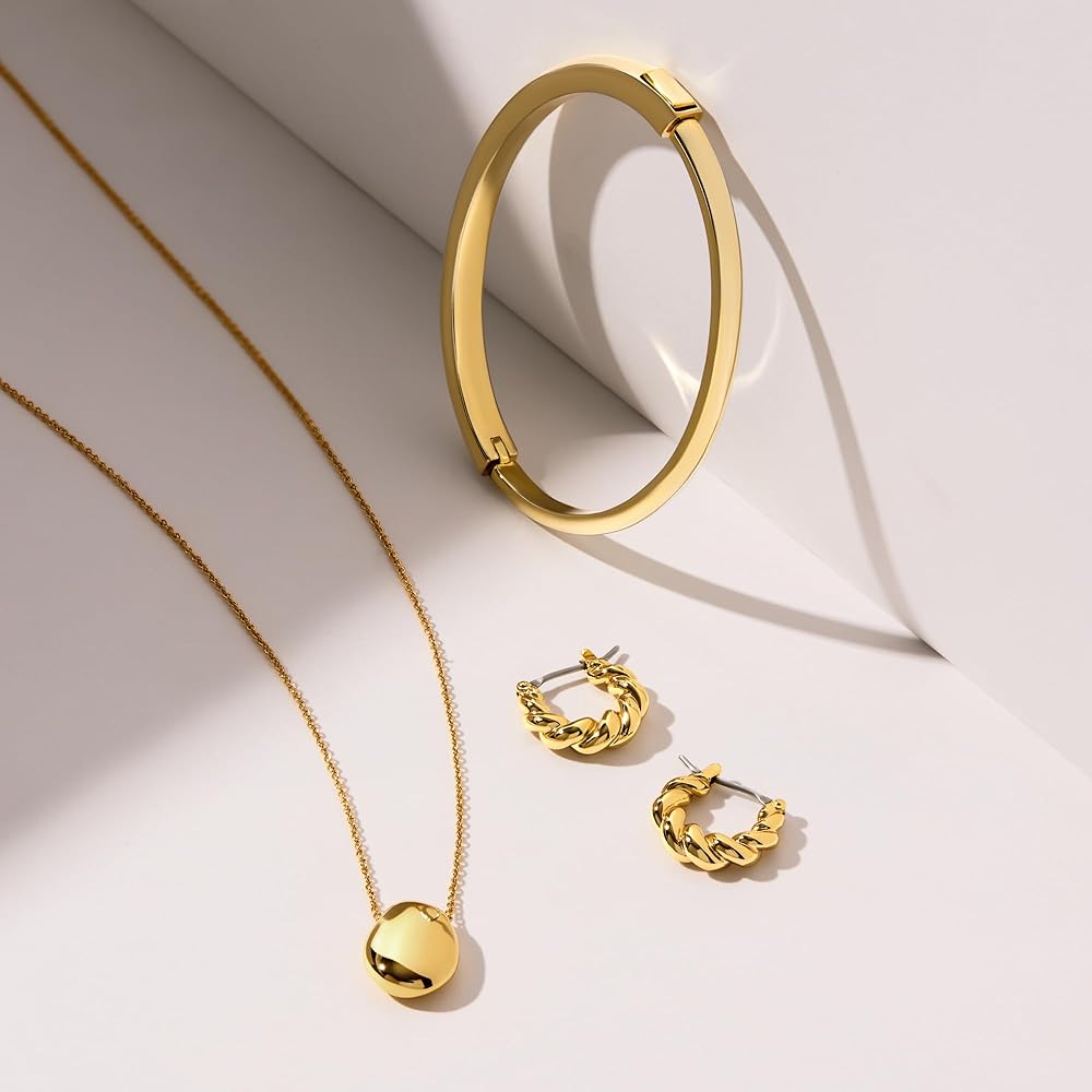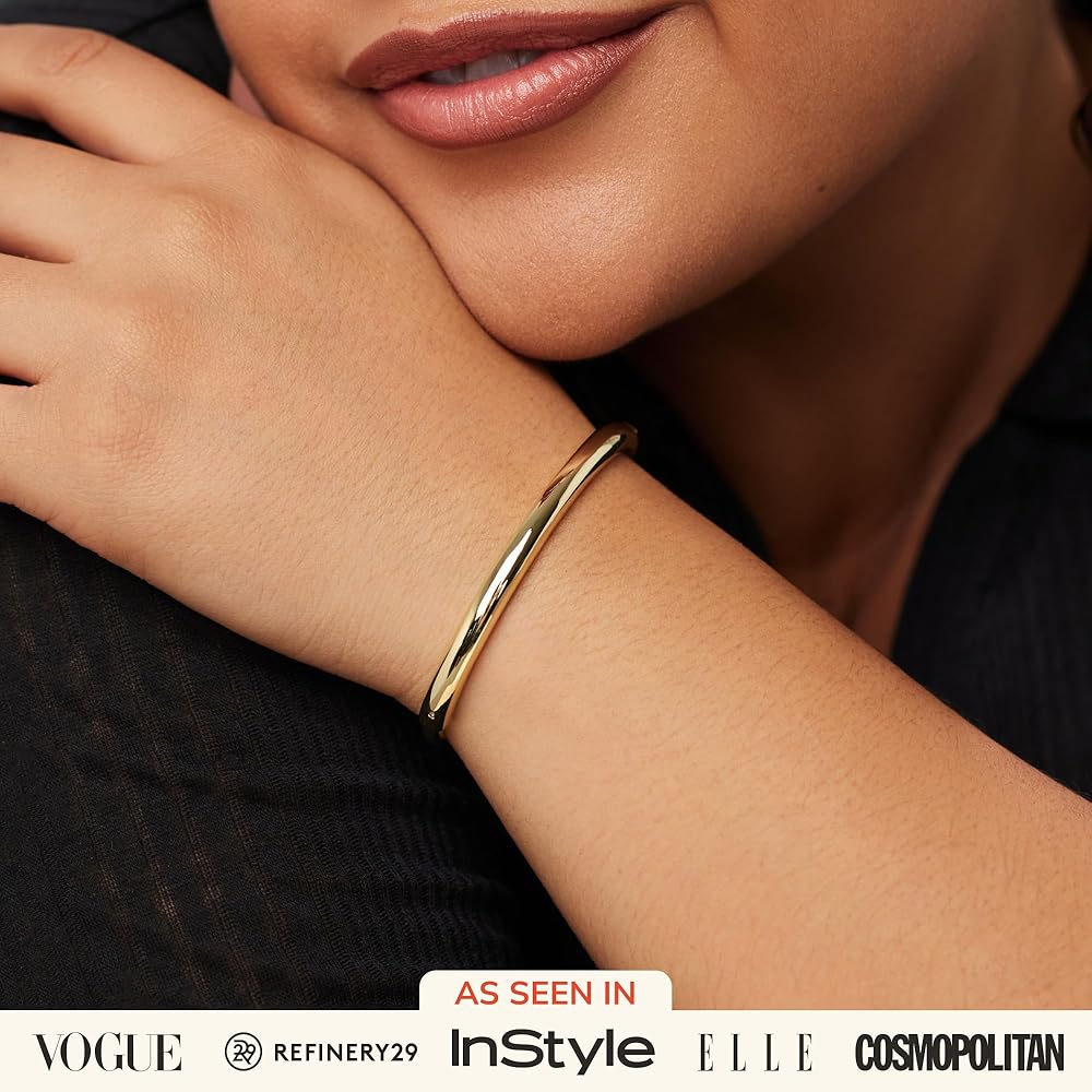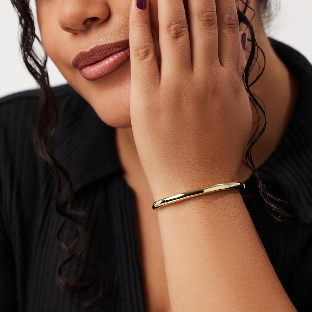 Quality Materials - Crafted with durability in mind, this gold bangle bracelet is hypoallergenic, water, and tarnish-resistant. Our unique and extra protective gold coating, along with extensive quality and control protocols, guarantee long-lasting radiance. This 14k gold plated bangle bracet adds a showstopping touch to your stack.