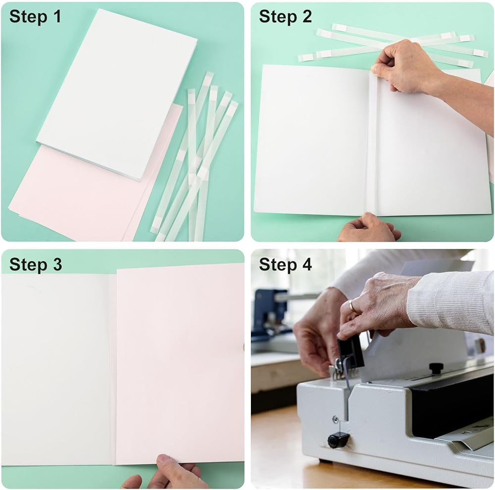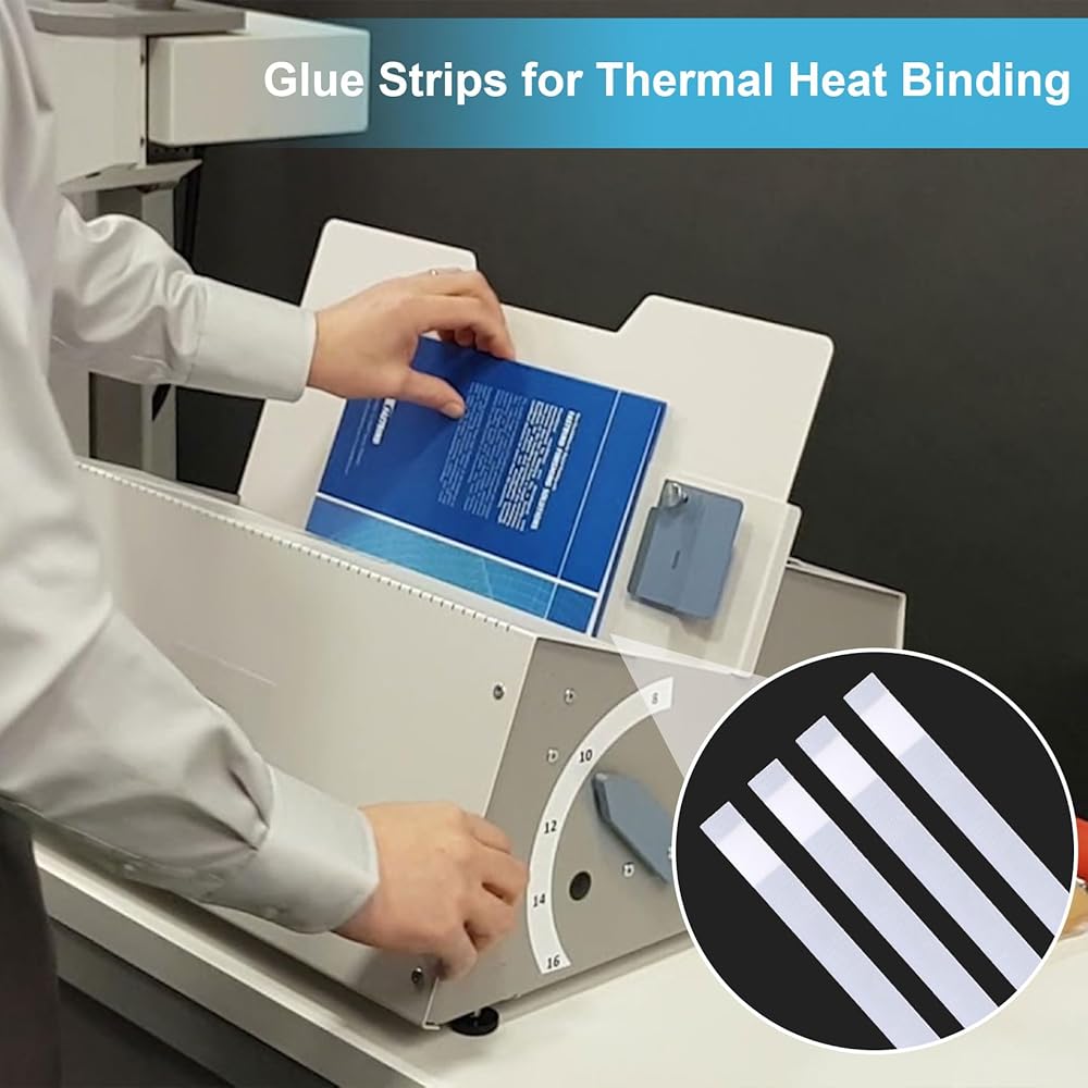 This book thermal binding glue strips includes: 20 hot melt adhesive strips, designed as three point double-sided tape for positioning, convenient for fixing inner pages, can be used for binding books and notes, they are the perfect tool for binding pages, paperback book covers, and thicker booklets.