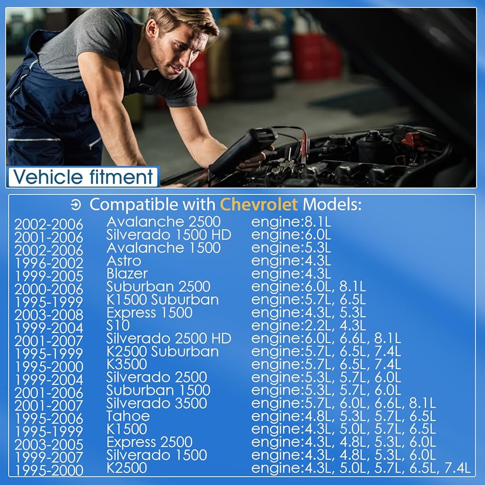 • الملاءمة 01: المستشعر متوافق مع CADILLAC ESCALADE(2002-2006)، متوافق مع CHEVROLET AVALANCHE 1500(2002-2006)، EXPRESS 1500(2003-2014)، EXPRESS 2500(2003-2005)، SILVERADO 1500(2001-2005) )، سوبربان 1500 (2000)، تاهو (2000-2006)