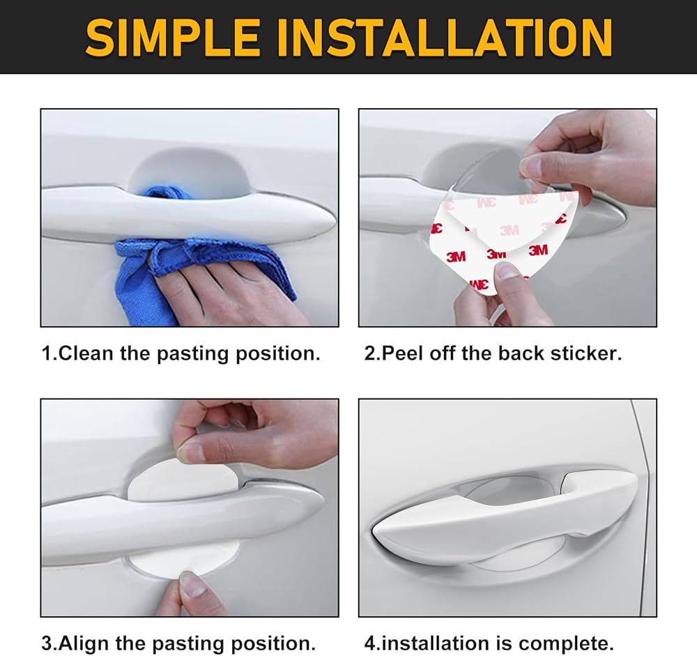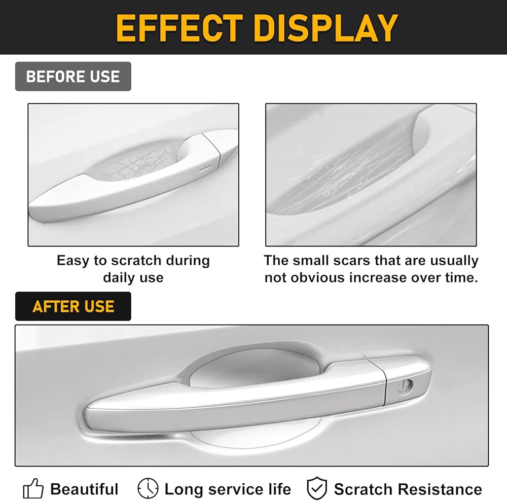 مادة متينة: مصنوع من مواد عالية الجودة، يضمن واقي الخدش الخاص بمقبض باب السيارة متانة طويلة الأمد وحماية موثوقة لمقابض أبواب سيارتك.