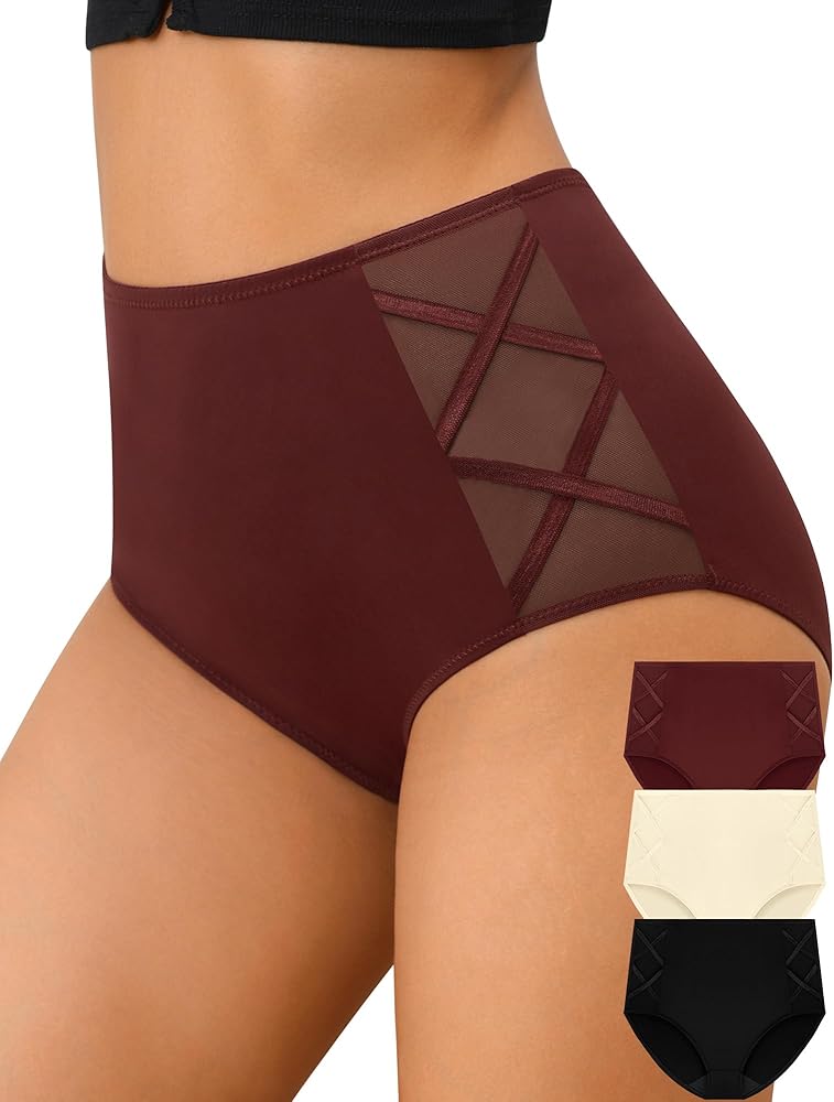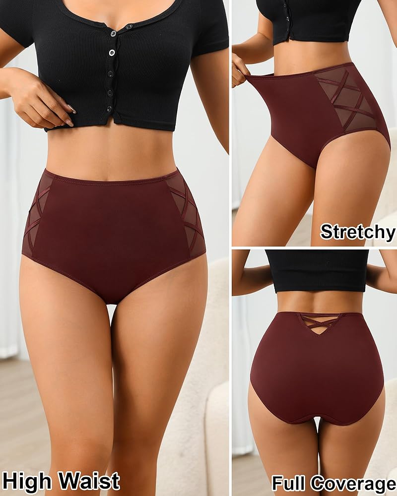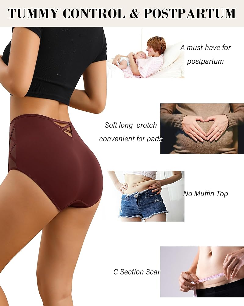 ملابس داخلية عالية الخصر بتغطية كاملة: حزام خصر مرتفع ناعم وقابل للتمدد ومغطى يستقر عند الخصر بدون حشوة أو قرص أو ربط أو ربط أو ليس ضيقًا جدًا، يقلل من مظهر الجزء العلوي من المافن. يوفر تغطية آمنة للأرداف، بينما يتميز بحزام متقاطع تصميم في الخلف لإبراز محيط الخصر. تتميز الملابس الداخلية عالية الخصر بوجود فتحة مزدوجة واسعة، كما أن الظهر الكامل يمنع "التعديل" المحرج ويضمن ملاءمة مثالية.