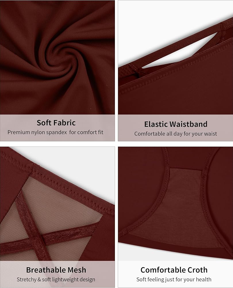 نسيج سراويل داخلية ناعمة ومريحة: الملابس الداخلية النسائية مصنوعة من مزيج مريح من 95% نايلون و10% ألياف لدنة لا ترهل أو ربط أو حشو. حزام متقاطع من الجانبين مع تصميم مجوف من الشاش الناعم، شبكة مسامية على كلا الجانبين تبقيك رائعة دون فقدان الجمال والغموض، كما أن الملابس الداخلية الماصة للرطوبة تحافظ على جفافها بسرعة وصديقة للبشرة.