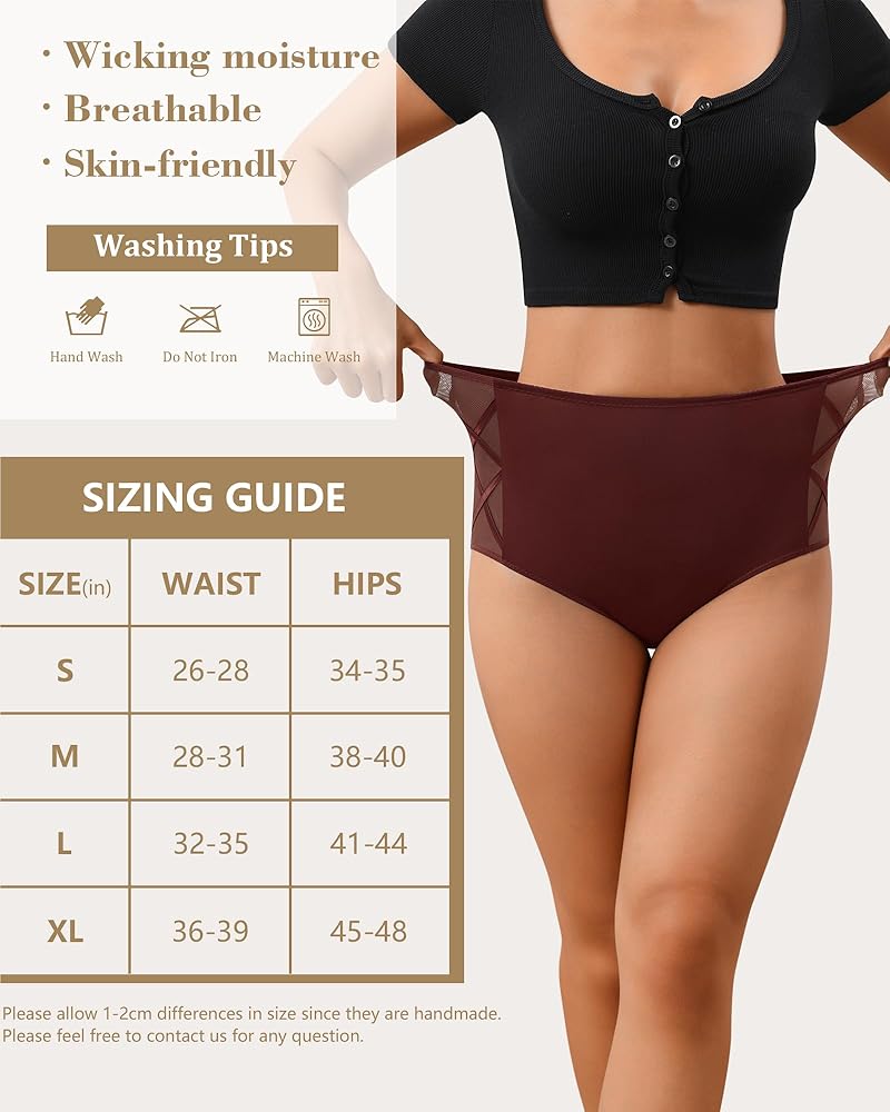 ملابس داخلية نسائية ناعمة ومريحة بمقاس كبير: تناسب الساقين بشكل مريح دون قطع. مرونة الخصر لا تقطع أو تحفر وتستقر عند الخصر الطبيعي. إنها مثالية للفساتين والسراويل عالية الخصر والجينز. مناسبة أيضًا لعمليات الولادة القيصرية والتعافي من جراحة البطن. توفر الملابس الداخلية ذات الحجم الكبير دعمًا كافيًا لحزام الخصر دون ممارسة أي ضغط على الندبة.