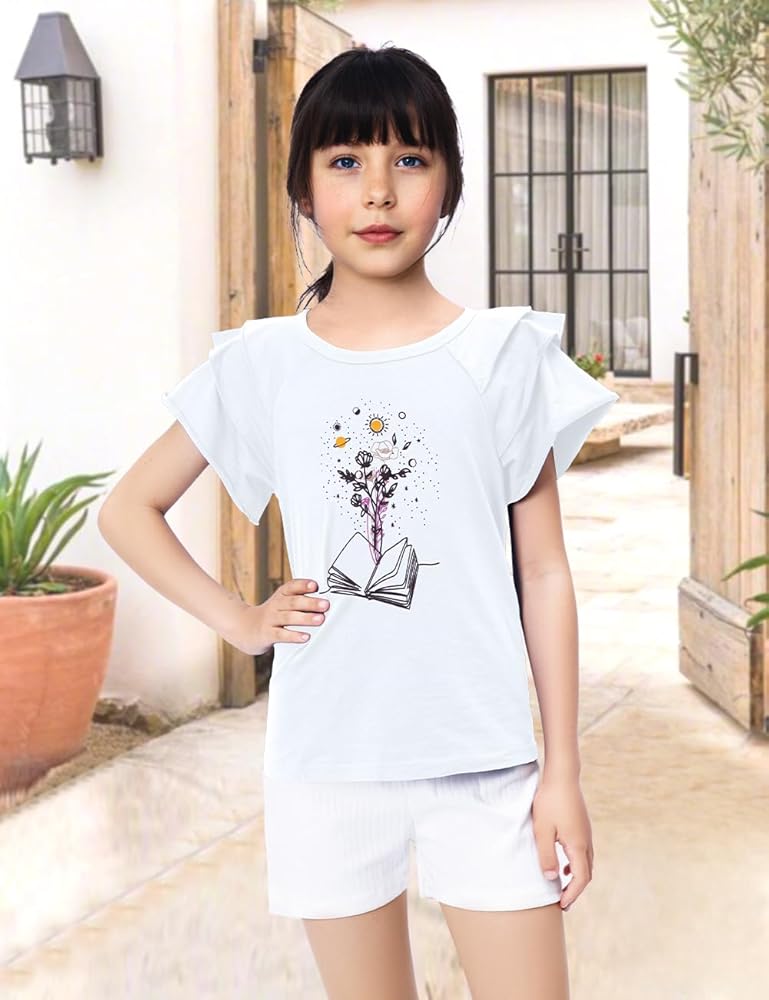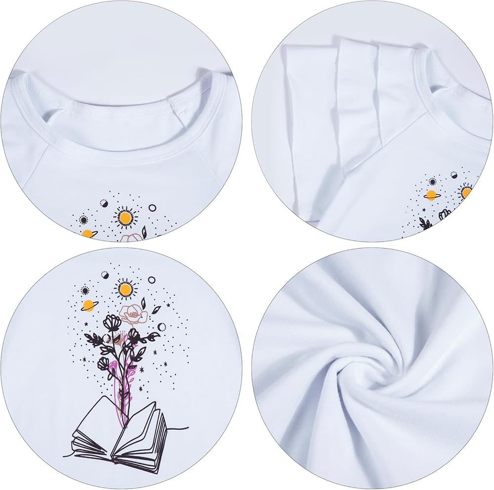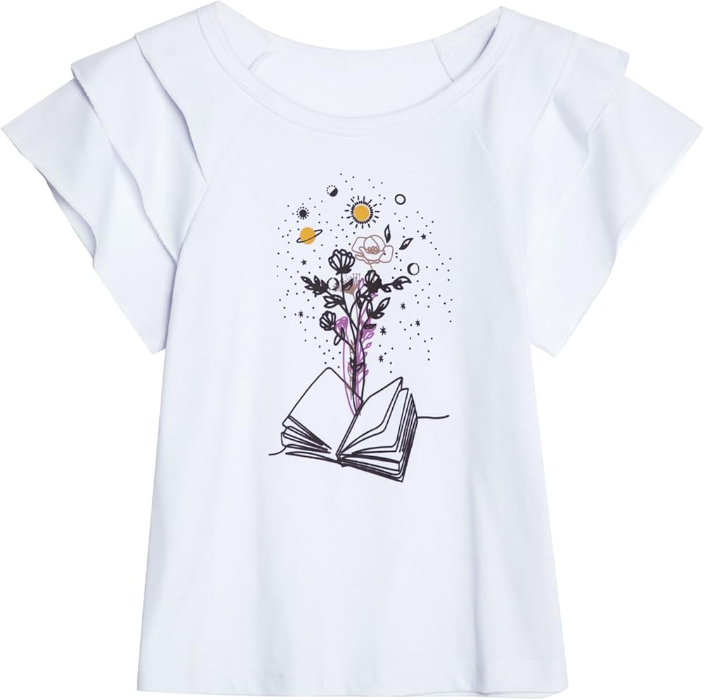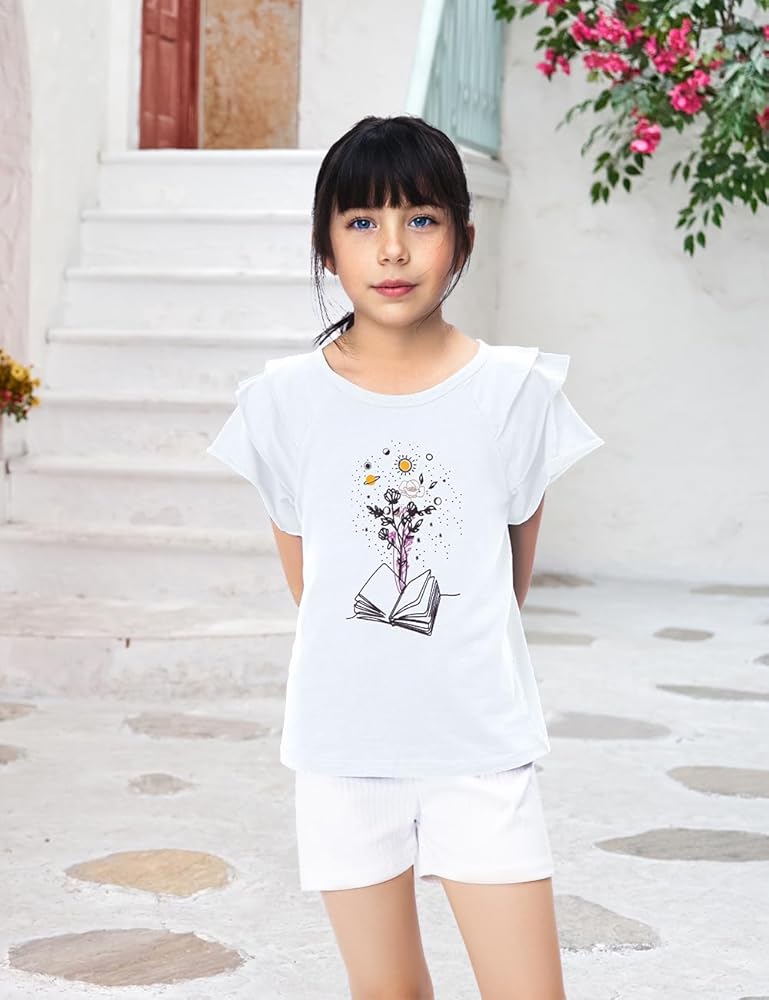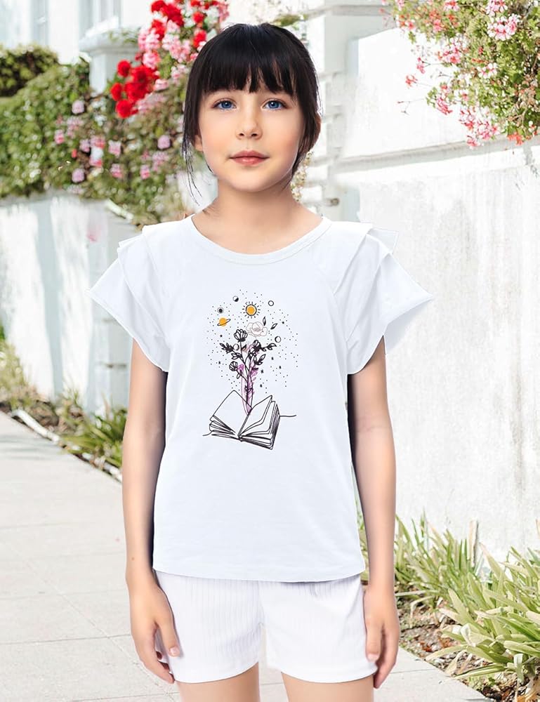 • تصميم أنيق بتفاصيل مرحة: تتميز قمصاننا للفتيات بتصميم كلاسيكي برقبة دائرية ومزينة بأكمام مكشكشة أنيقة، وهي عصرية وجذابة. تضيف طباعة الأزهار الجذابة لكتاب القراءة عنصرًا مرحًا، مما يجعلها مثالية لأي فتاة صغيرة تواكب الموضة.