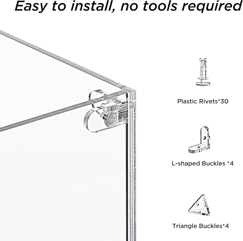 التجميع بدون جهد: يتم توصيل هذا القفص الأكريليك بسهولة باستخدام المسامير والأبازيم البلاستيكية، مما يلغي الحاجة إلى الأدوات. تثبيته بسيط مثل تجميع أحجية ممتعة، ولا يتطلب سوى يد واحدة للإعداد السريع والسهل.