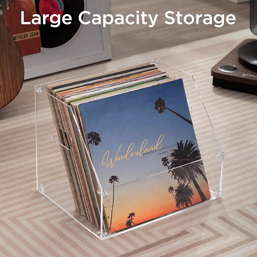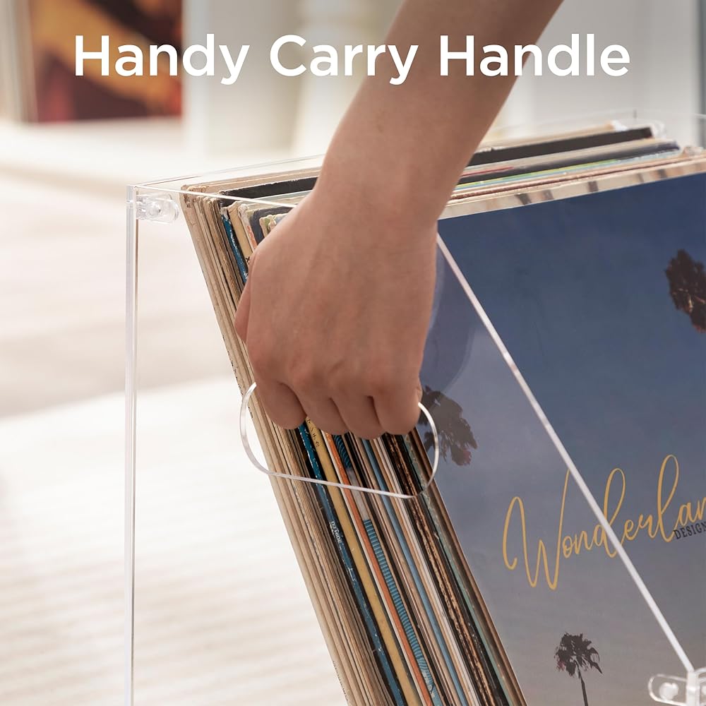 وحدة تخزين سجلات الفينيل eletecpro مصنوعة من الأكريليك مع مقبض يحمل ما يصل إلى 60 سجلًا، صندوق حامل سجل قوي ومتعدد الوظائف لتخزين LPs والألبومات، منظم أنيق على المكتب للمنزل