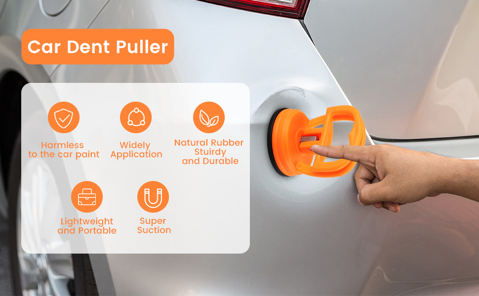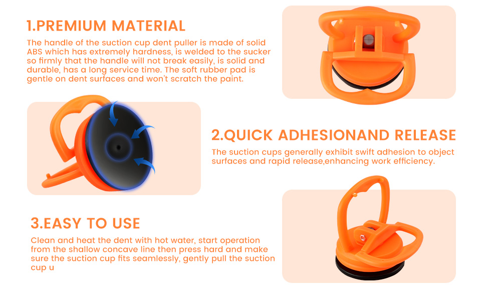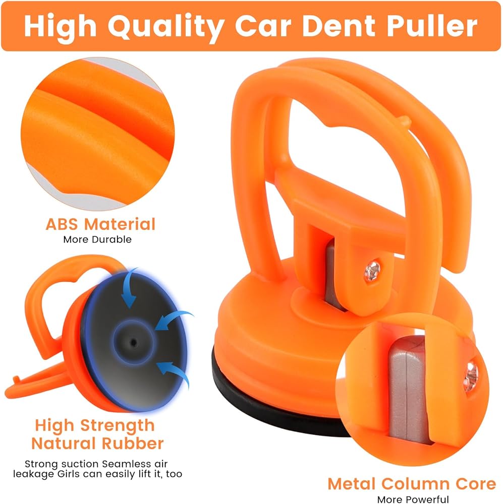 【أكواب شفط للسيارة بدون طلاء】مصنوعة من مادة أكريلونتريل بوتادين ستايرين المتينة والمطاط عالي القوة، تعمل أداة سحب الانبعاجات بالشفط على إصلاح الانبعاجات بشكل فعال دون الإضرار بطلاء سيارتك. يضمن تصميمها المرن عدم التشوه، مما يحافظ على نعومة سيارتك.