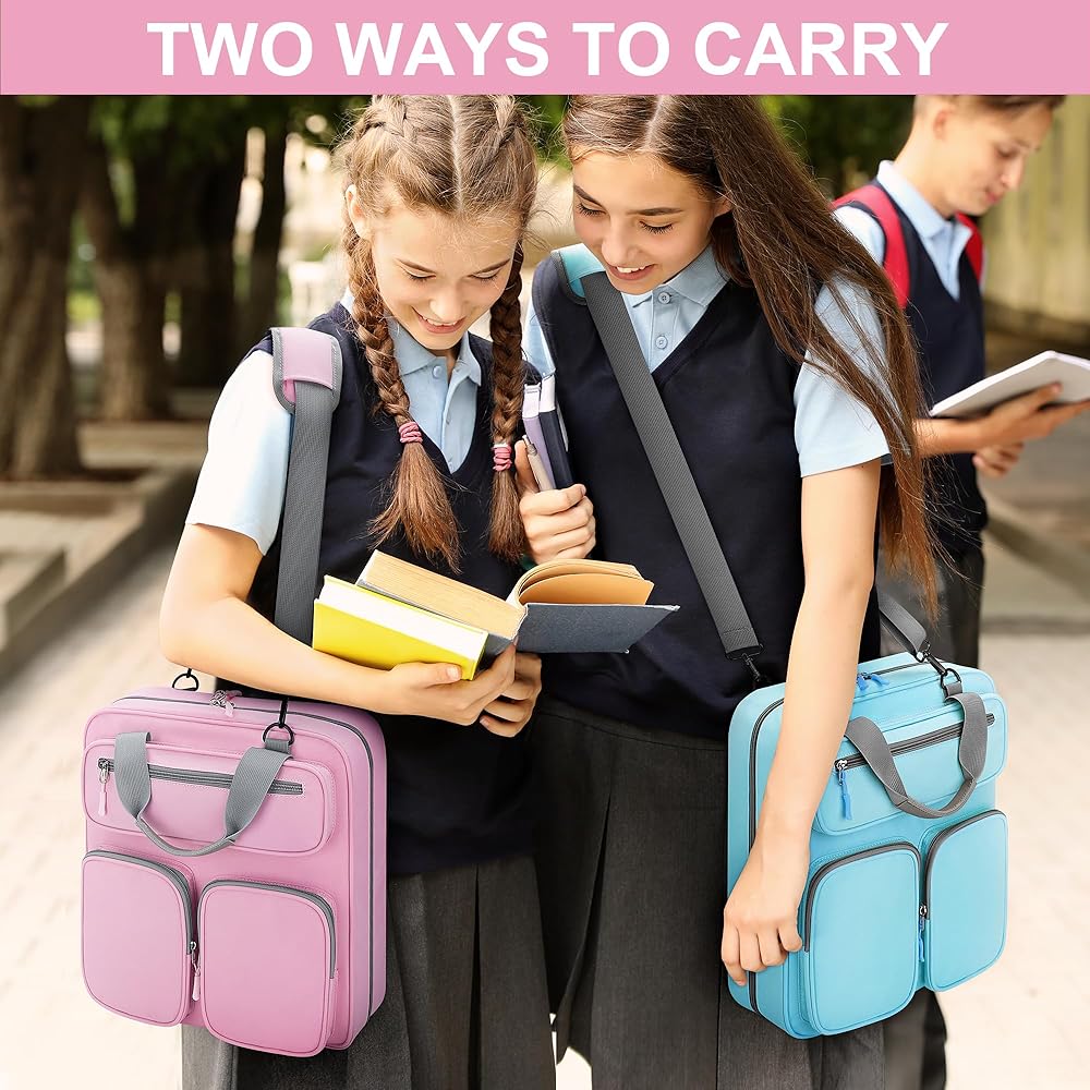 【سهلة الحمل】مقبض مريح وحزام كتف قابل للتعديل يجعل من السهل حمل حافظة السحاب ذات الثلاث حلقات من المنزل إلى الفصل الدراسي. تم تصميمه مع وضع راحة الطلاب في الاعتبار، فهو يزيل العبء عن كتفيك ويوفر أقصى قدر من الراحة للمستخدمين أثناء التنقل، سواء كنت تتنقل في الممرات المزدحمة أو تسافر من وإلى المدرسة.