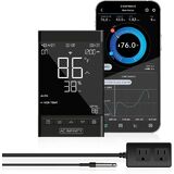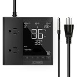 A digital outlet controller designed to provide multiple devices with independently programmed temperature, humidity, and time-based controls. It is built with a large backlit LCD display with climate readings and settings that can be set to Fahrenheit or Celsius. Includes a 12-foot sensor probe with a waterproof thermal-alloy head that accurately detects current temperature and humidity conditions. The controller's two outlets can power devices up to 1100W combined to automate their own programming.